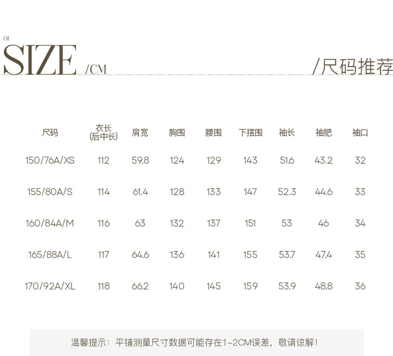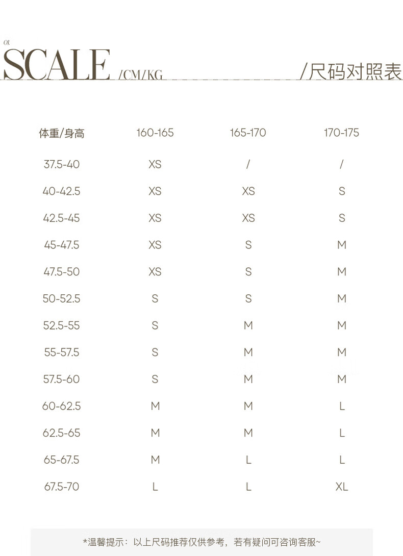 China (cm) 160-165/84-86 165-170 / 88-90 167-172 / 92-96 168-173 / 98-102 170-176 / 106-110