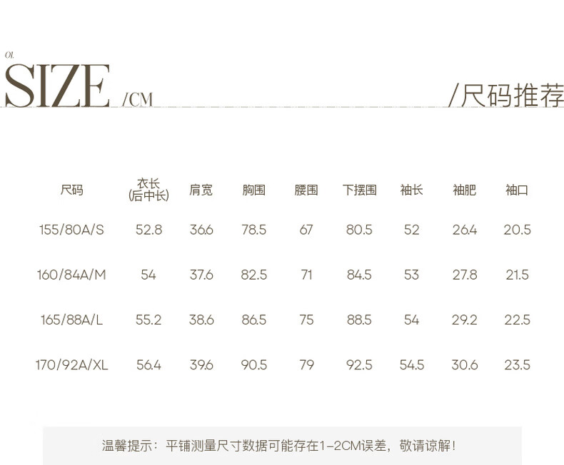 China (cm) 160-165/84-86 165-170 / 88-90 167-172 / 92-96 168-173 / 98-102 170-176 / 106-110