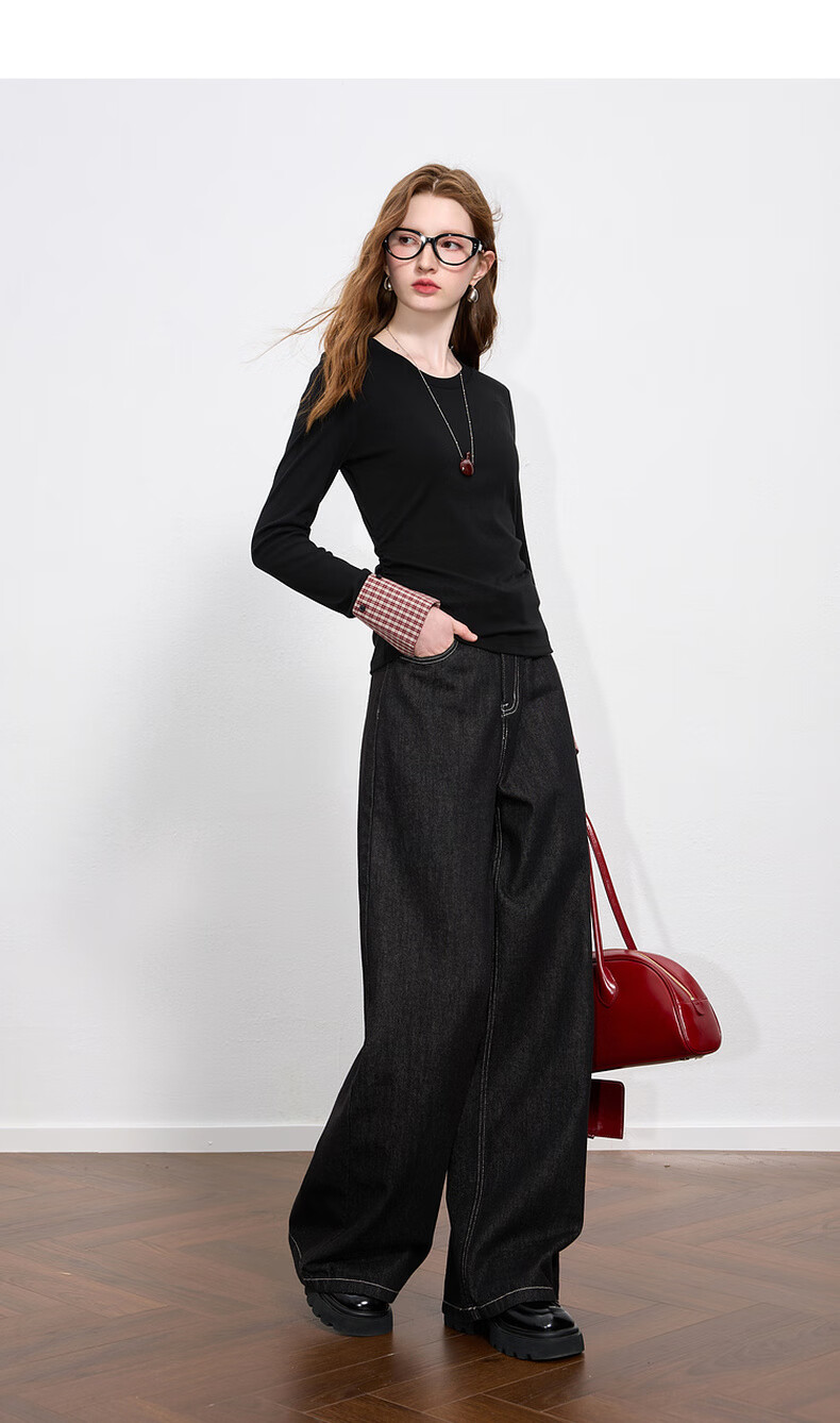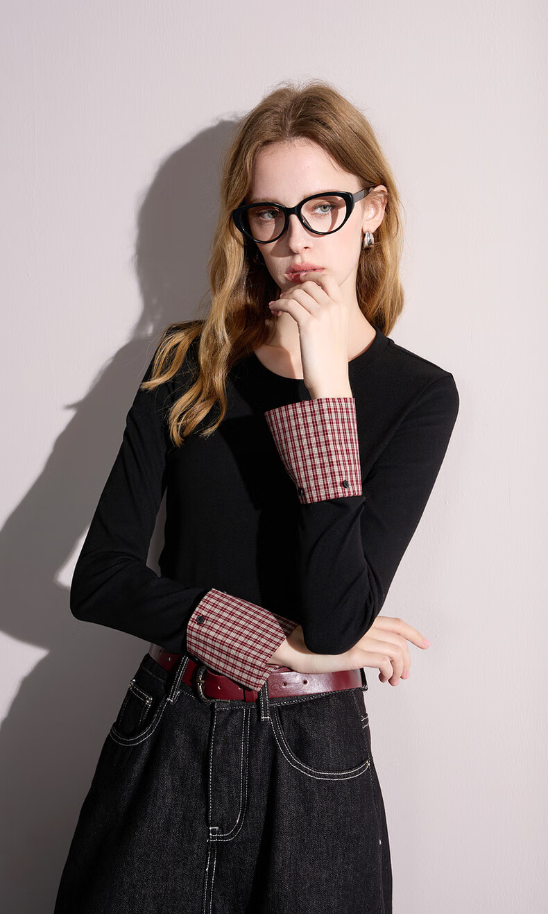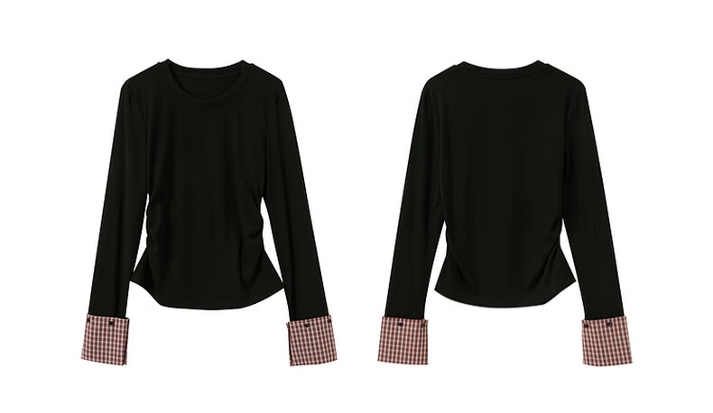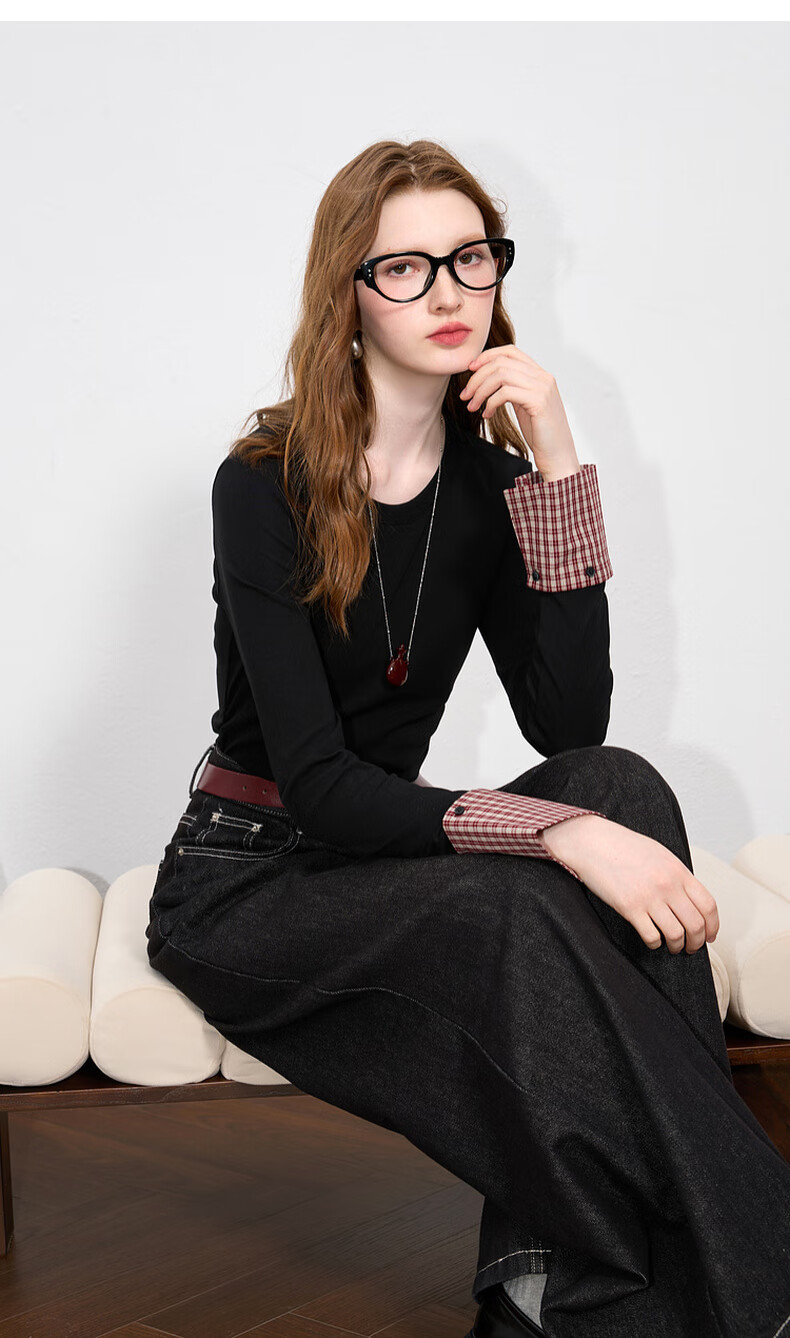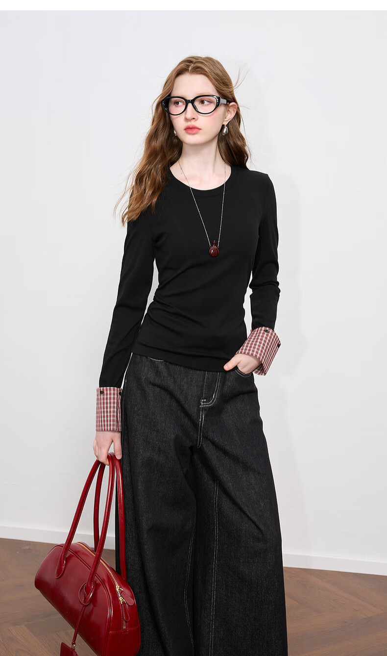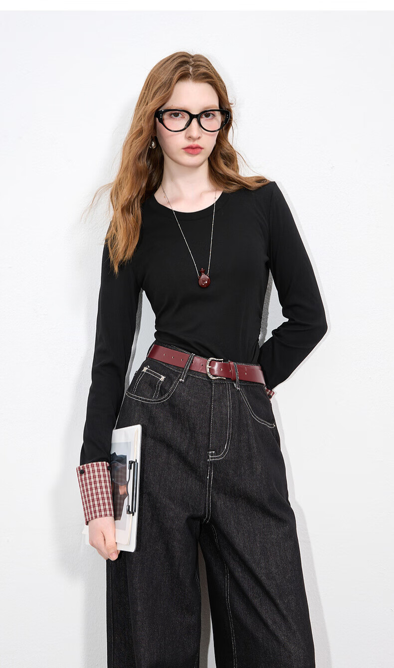 Sancai 2025 Autumn New Round Neck Long Sleeve T-Shirt Bottoming Top Right Shoulder Slim M