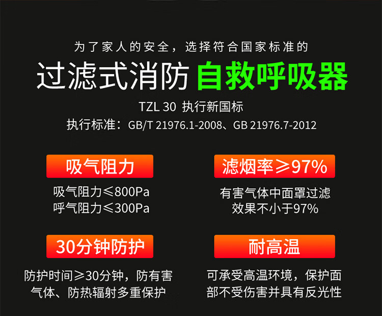 Civil air defense preparedness emergency kit gas mask fire smoke mask full face fire escape filter fire self-rescue respirator hotel dedicated rental room home household fire extinguishing four-piece set gas mask fire mask fire certification + water-based fire extinguisher + fire blanket