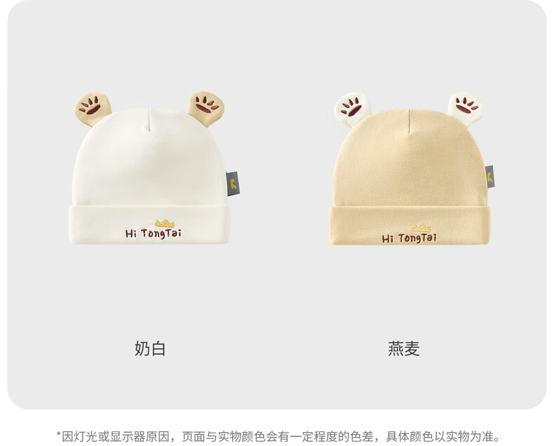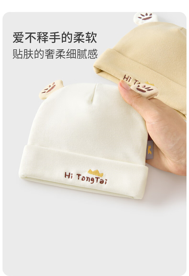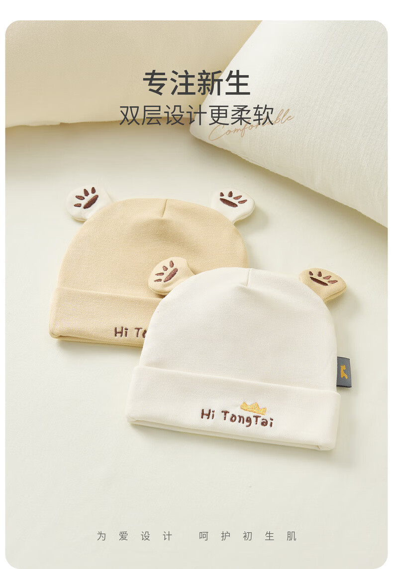 Tongtai (TONGTAI) baby hat spring and autumn baby 0-3 months fetal cap newborn cute double-layer windproof hat milk white 34-38cm