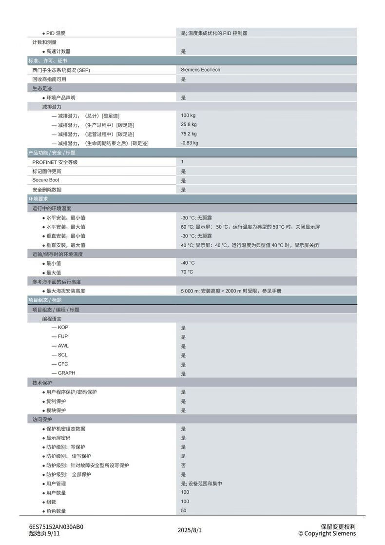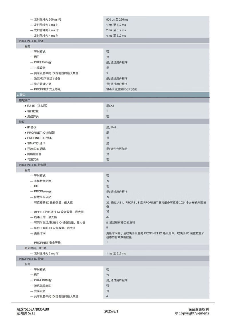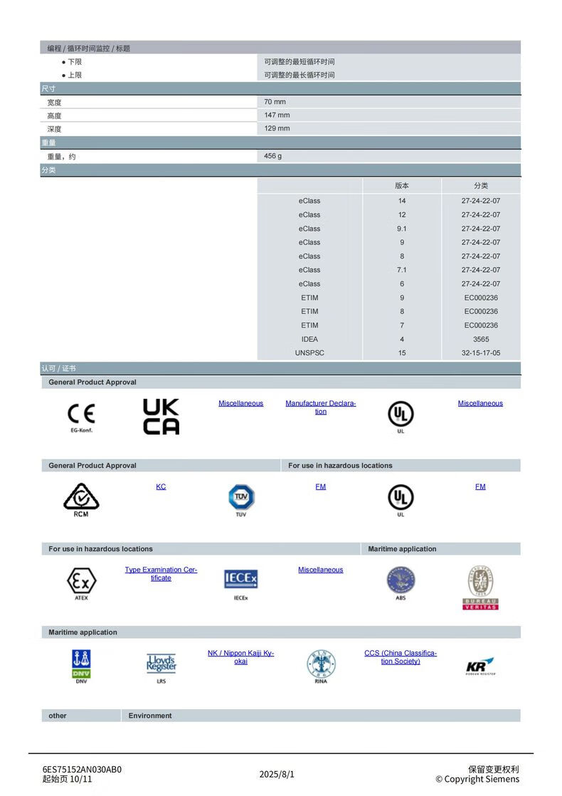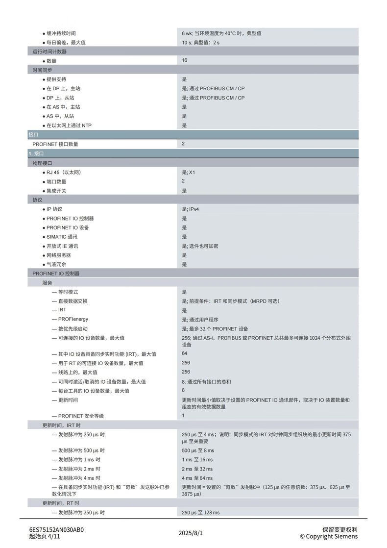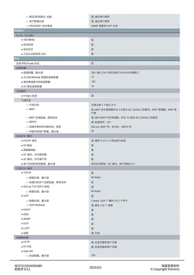 Siemens S7-1500 series CPU module standard type 6ES75152AN030AB0
