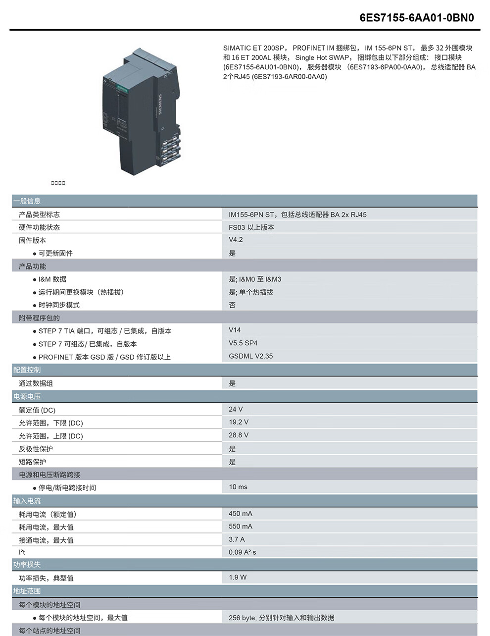 Siemens interface module ET200SP series 6ES71556AA010BN0