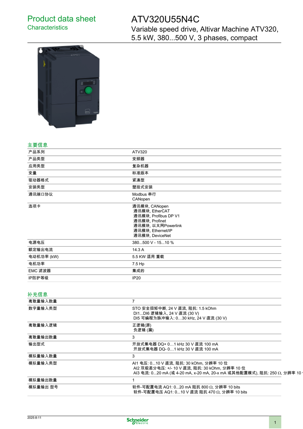 Schneider Electric ATV320U55N4C three-phase inverter, 400V, 5.5kW, compact ATV320U55N4C