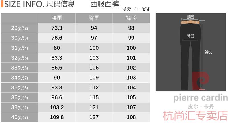 Outseam (cm) 99 cm 101.5 cm 104 cm 106.5 cm 109 cm