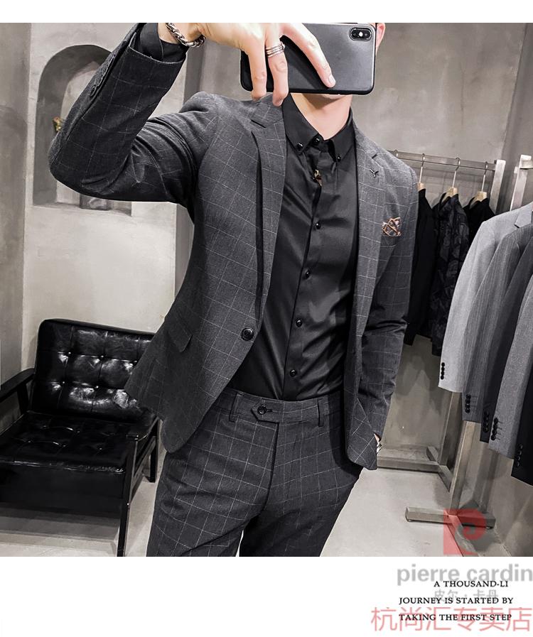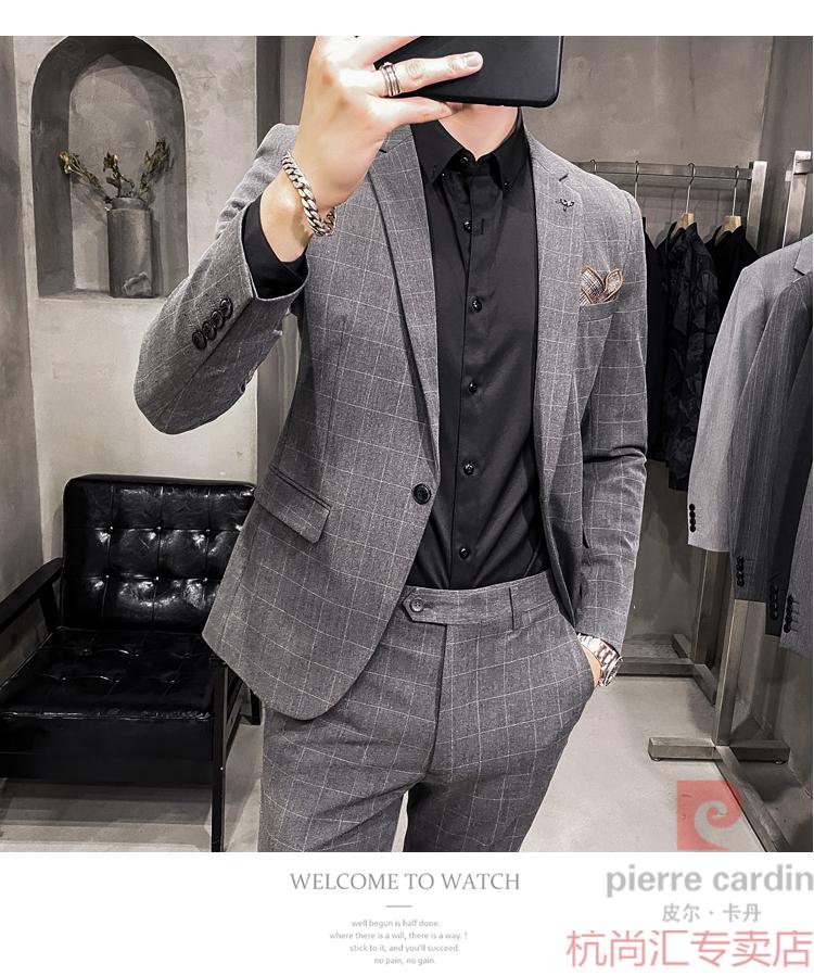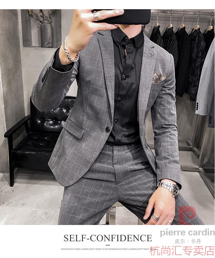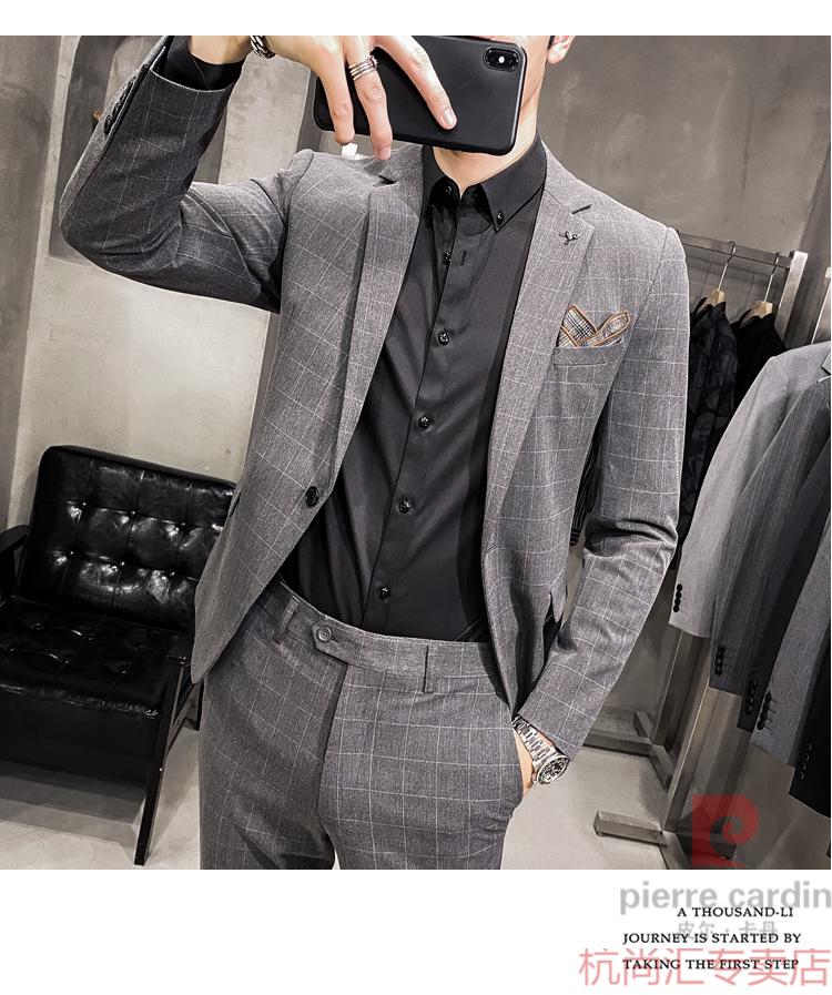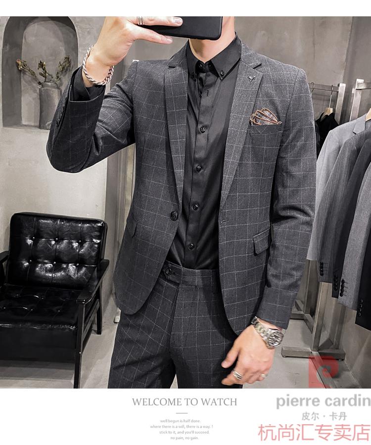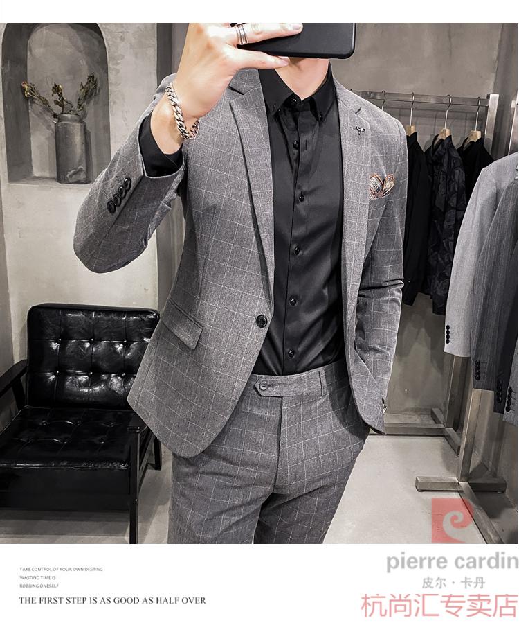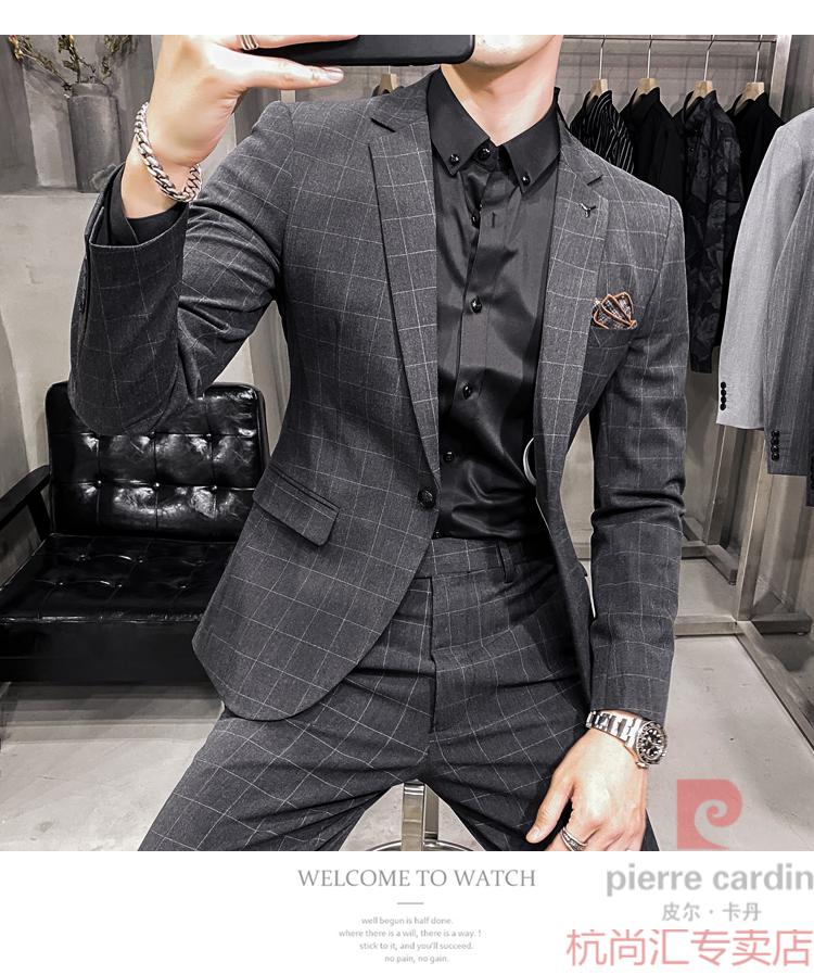 Pierre Cardin light luxury high-end brand men's fashion plaid suit men's suit youth slim British style handsome suit men's handsome casual jacket light luxury knitted dark gray suit and pants L