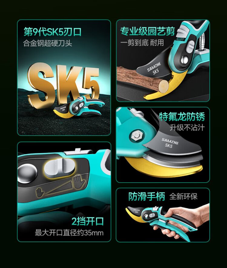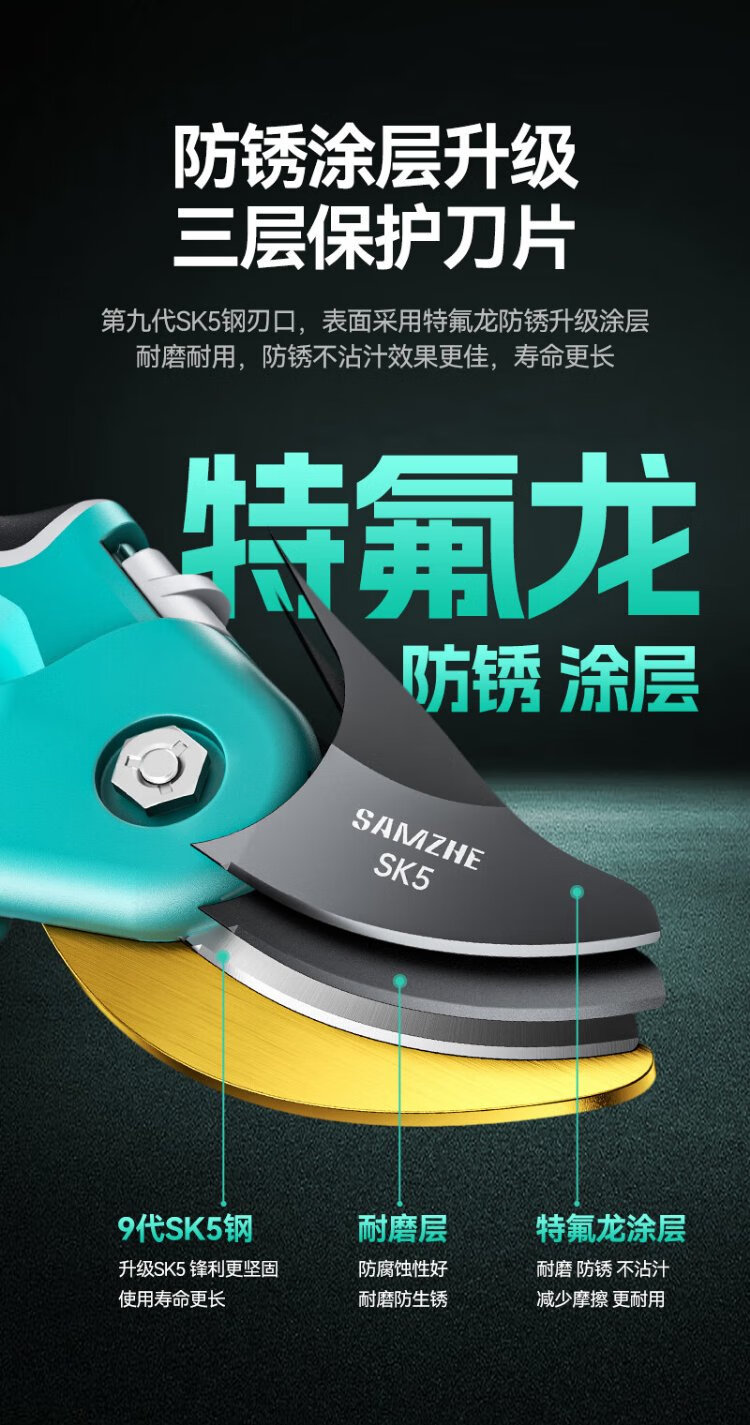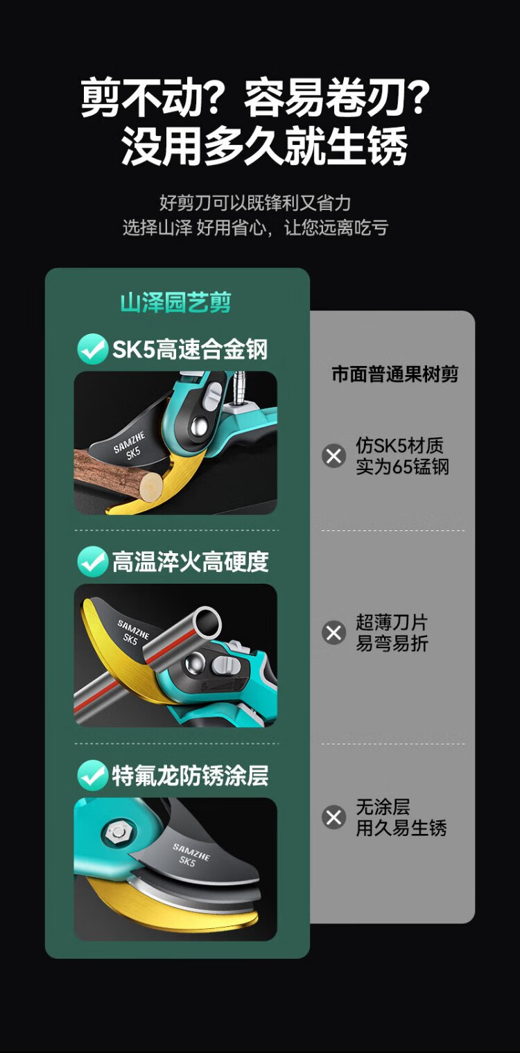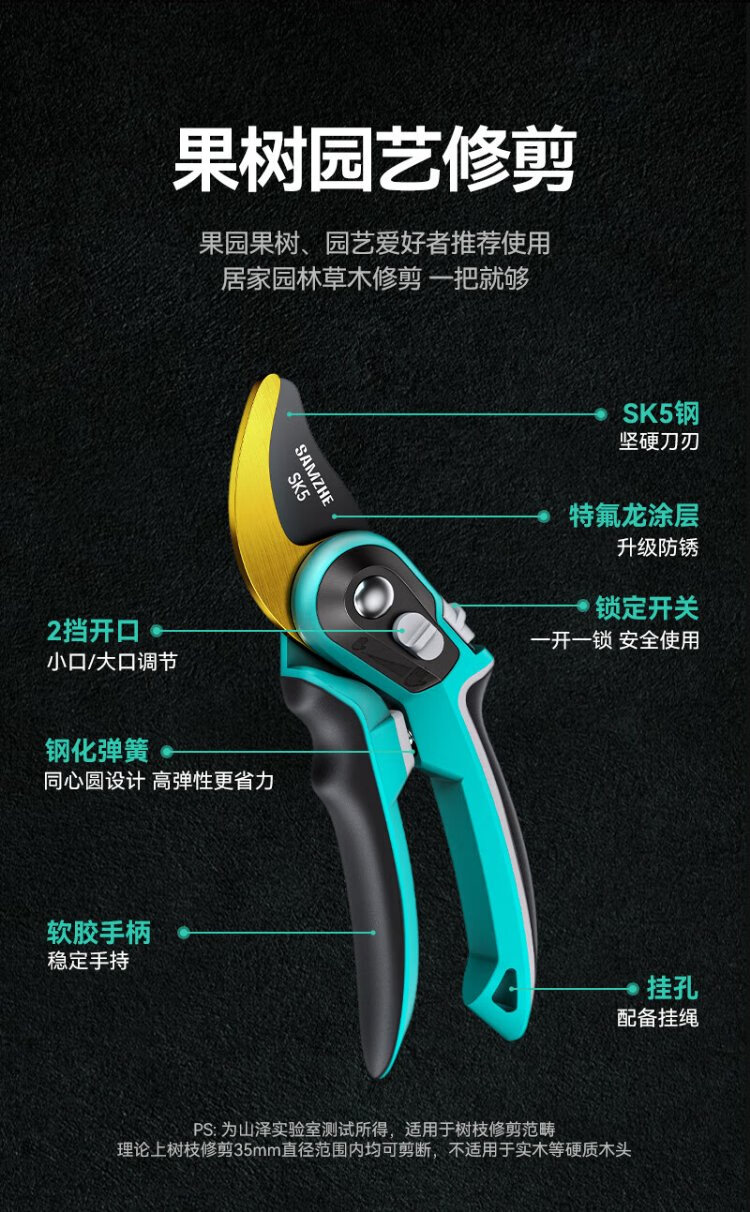Shanze garden pruning scissors for household flowers and bonsai shapes, labor-saving fruit tree garden pruners 9 inches YLJ01