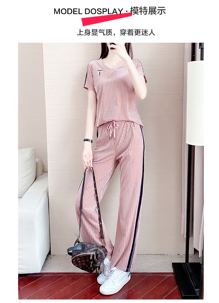 OYZ Hong Kong trendy brand short-sleeved suit for women summer new loose slimming fashionable casual V-neck wide-leg pants two-piece set trendy pink L