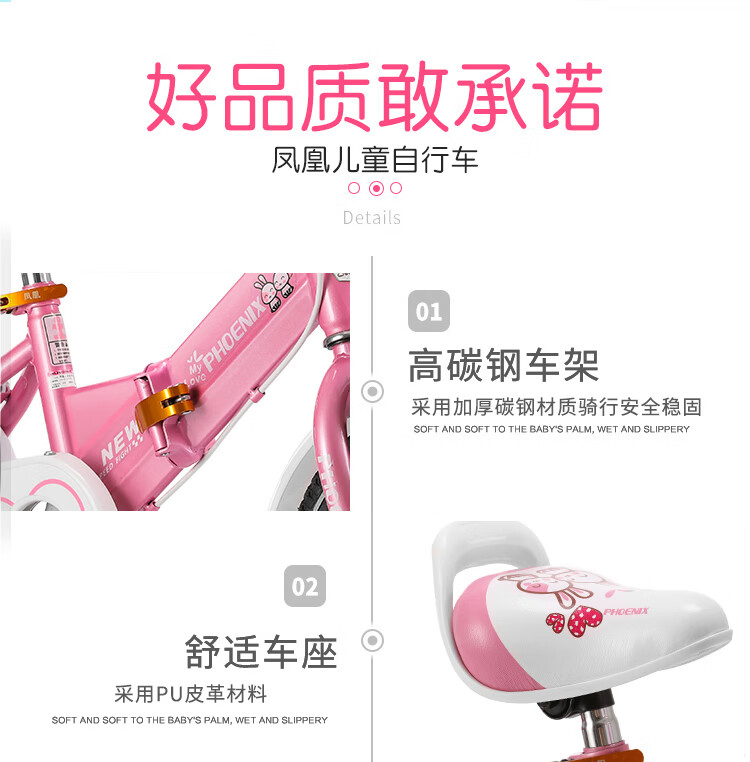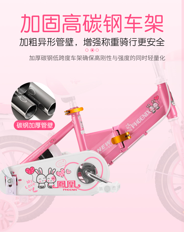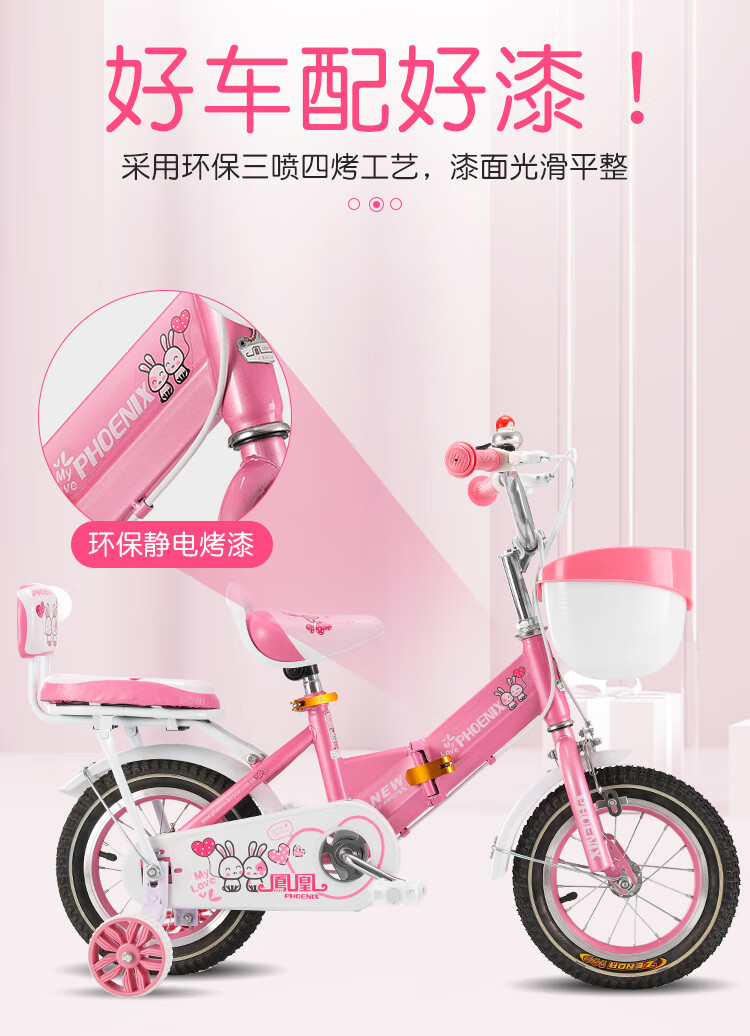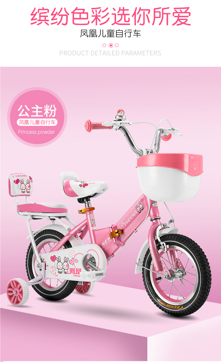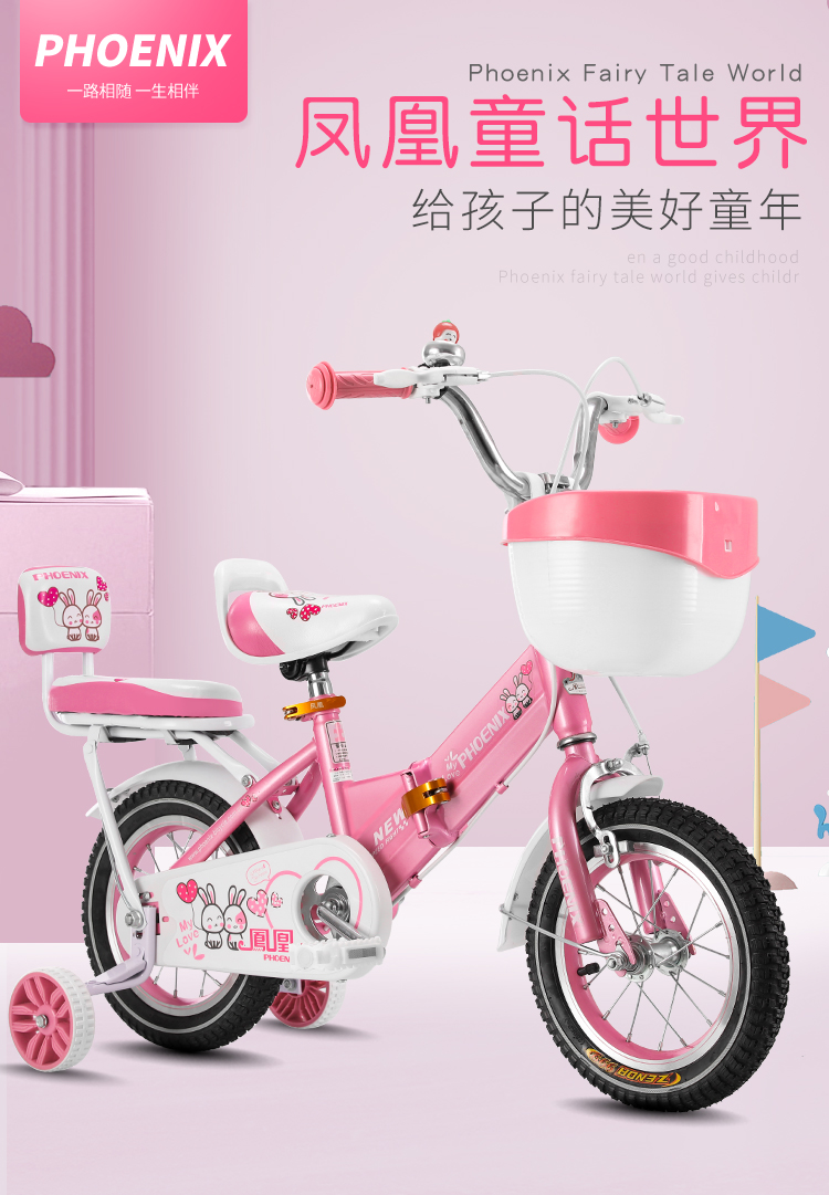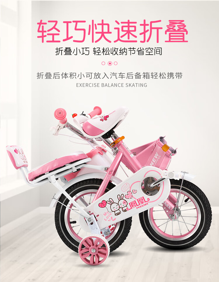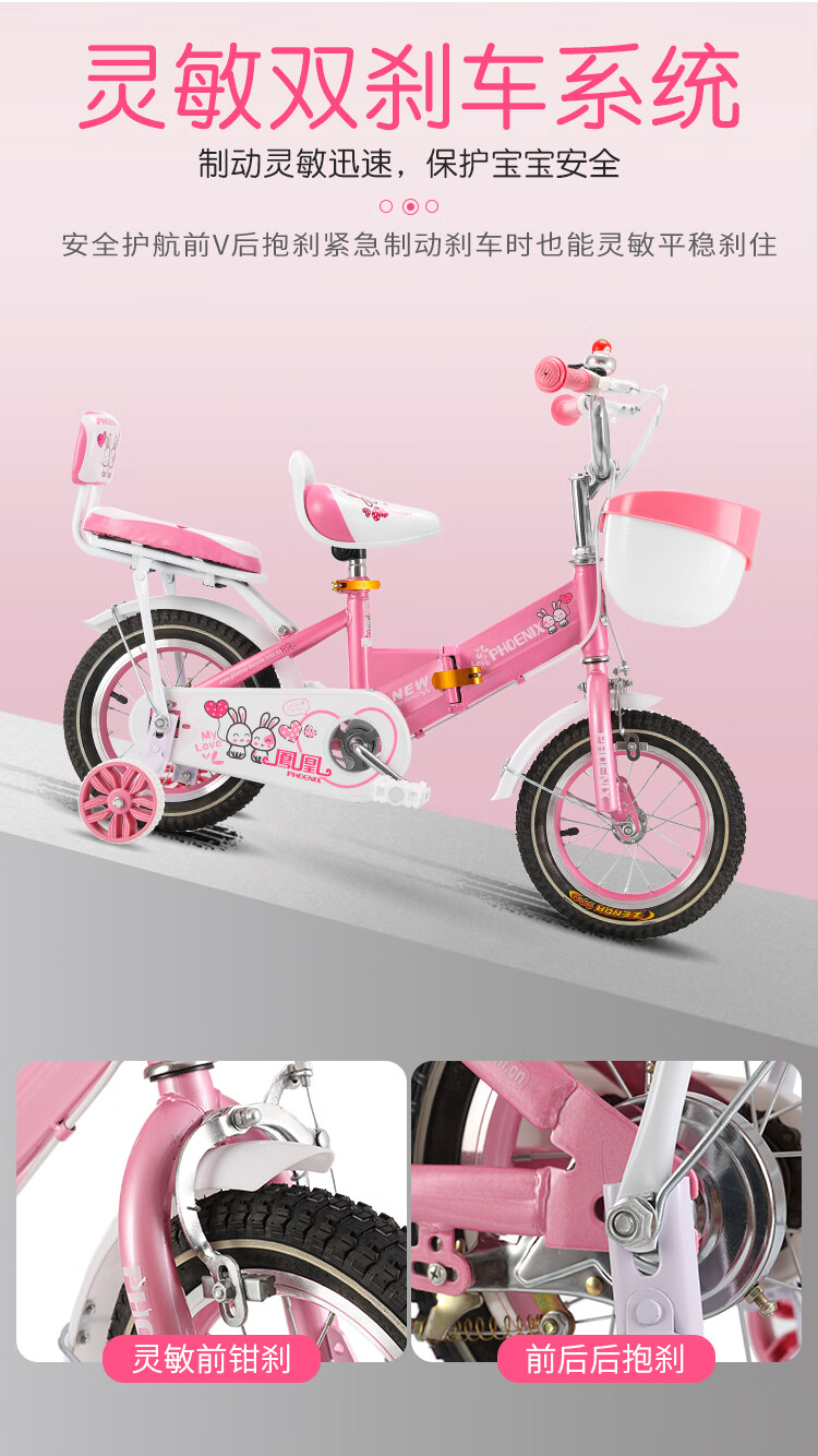 Phoenix children's bicycle 3-6-8 years old children's bicycle foldable baby bicycle boys and girls large children's stroller pink 14 inches