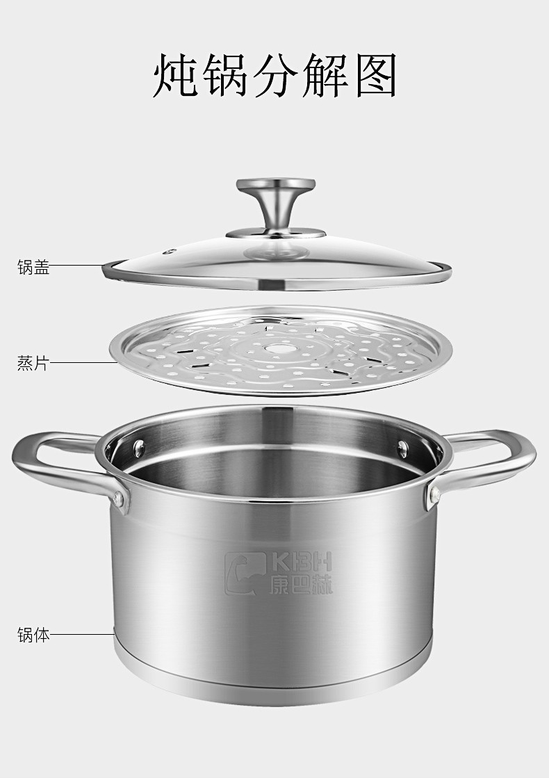 Konbach 5th generation pot set, wok set, frying pan, soup pot, steamer, milk pot, pressure cooker, cutting board set, knife basin set, kitchen complete set + four pieces of knives, spatulas, spoons and steam drawers