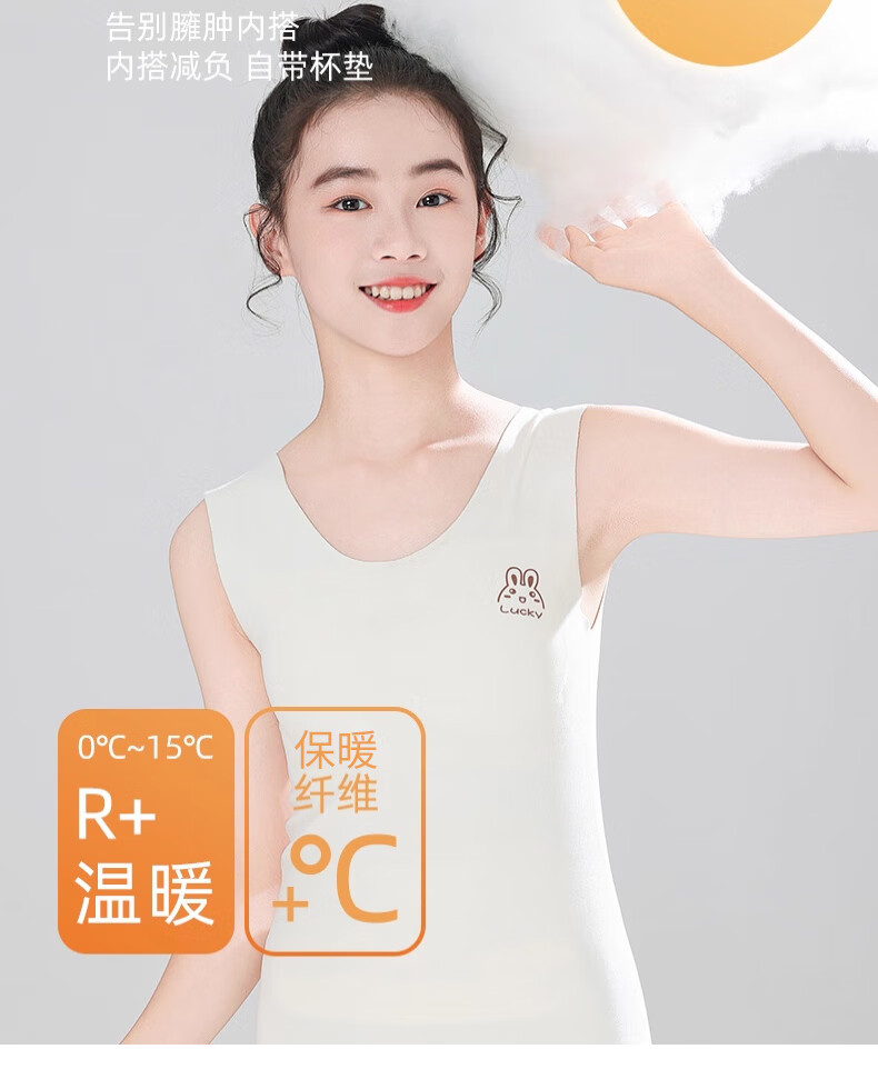 Ancient and modern girls' thermal vest women's underwear junior high school 8-16 years old no need to wear bra girls high school adolescent development period L