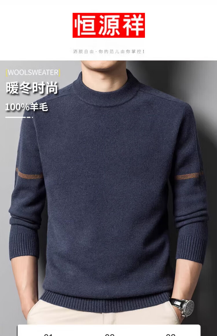 Hengyuanxiang 100 % reiner Wollpullover Herren-Winter-Rundhalspullover Herren-Business-Volltonfarbe-Strick-Bottom-Shirt