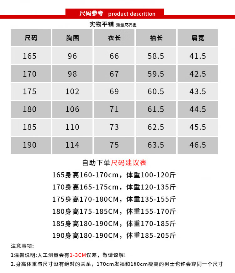 China (cm) 165 / 88-90 170 / 96-98 175 / 108-110 180 / 118-122 185 / 126-130