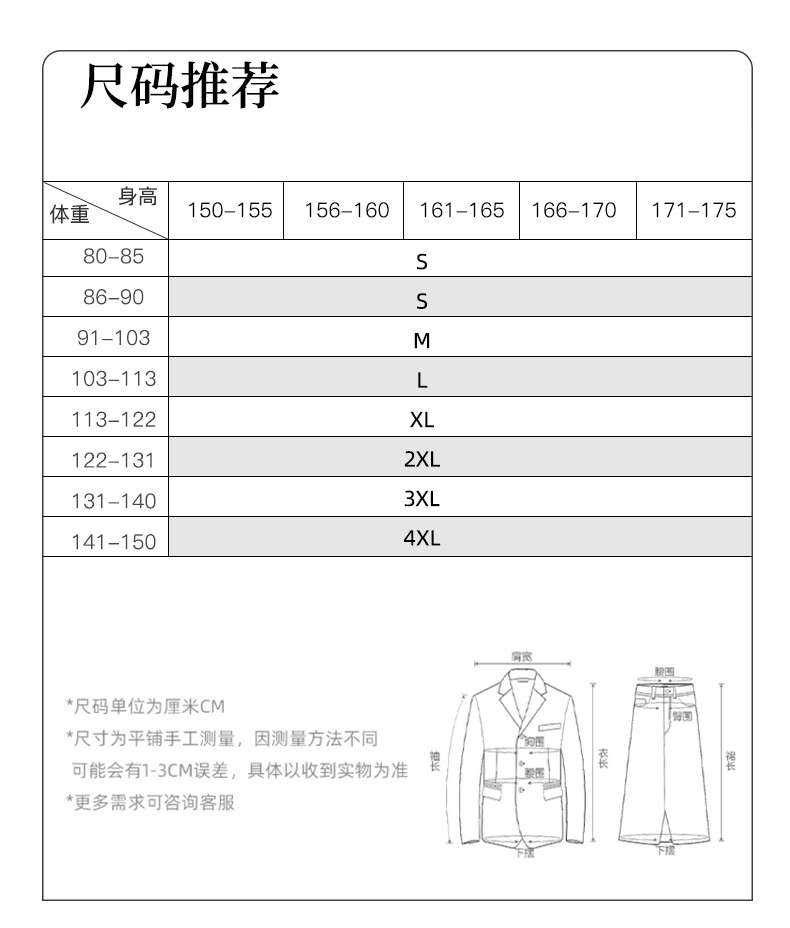China (cm) 160-165/84-86 165-170 / 88-90 167-172 / 92-96 168-173 / 98-102 170-176 / 106-110