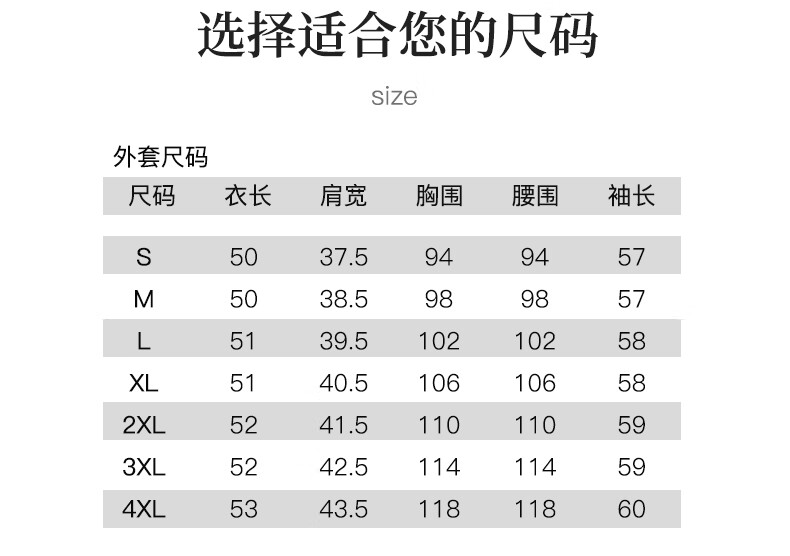 Size (cm) 42 44 46 48 50