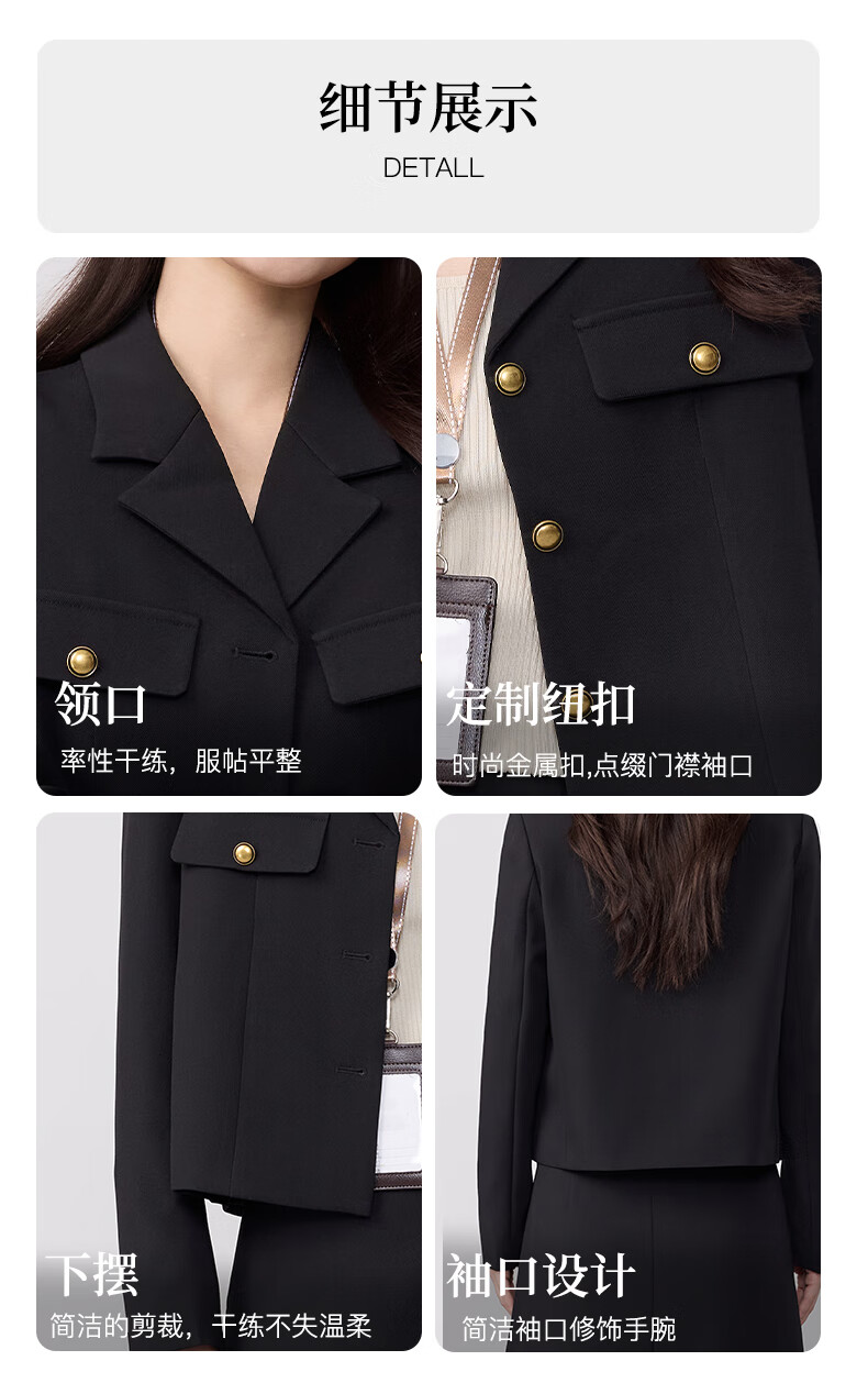 HANMANKE suit jacket, feminine style, small fragrance jacket, business interview, professional formal suit, daily commuting black suit