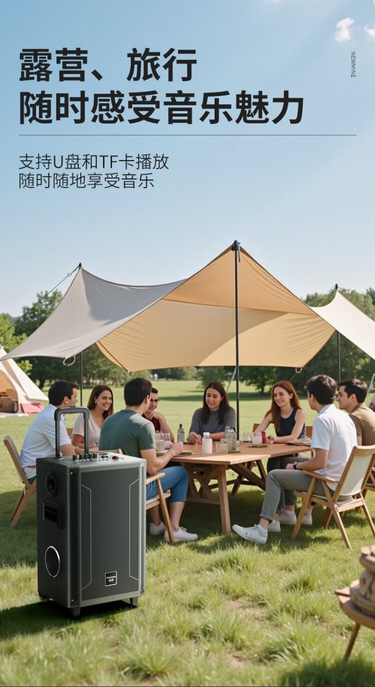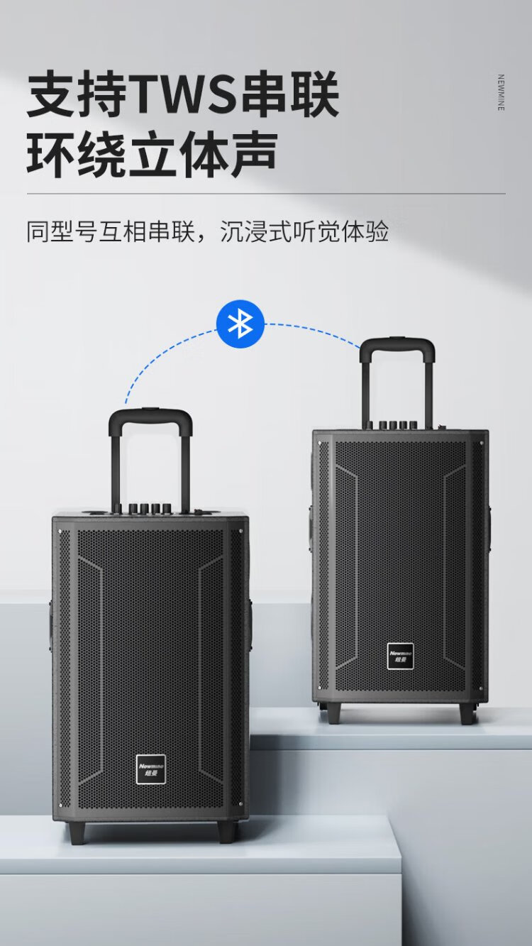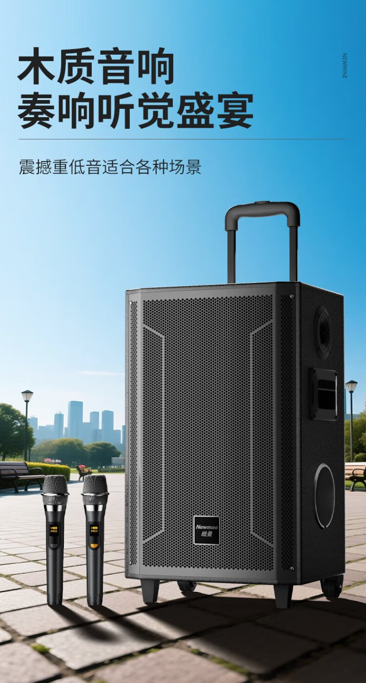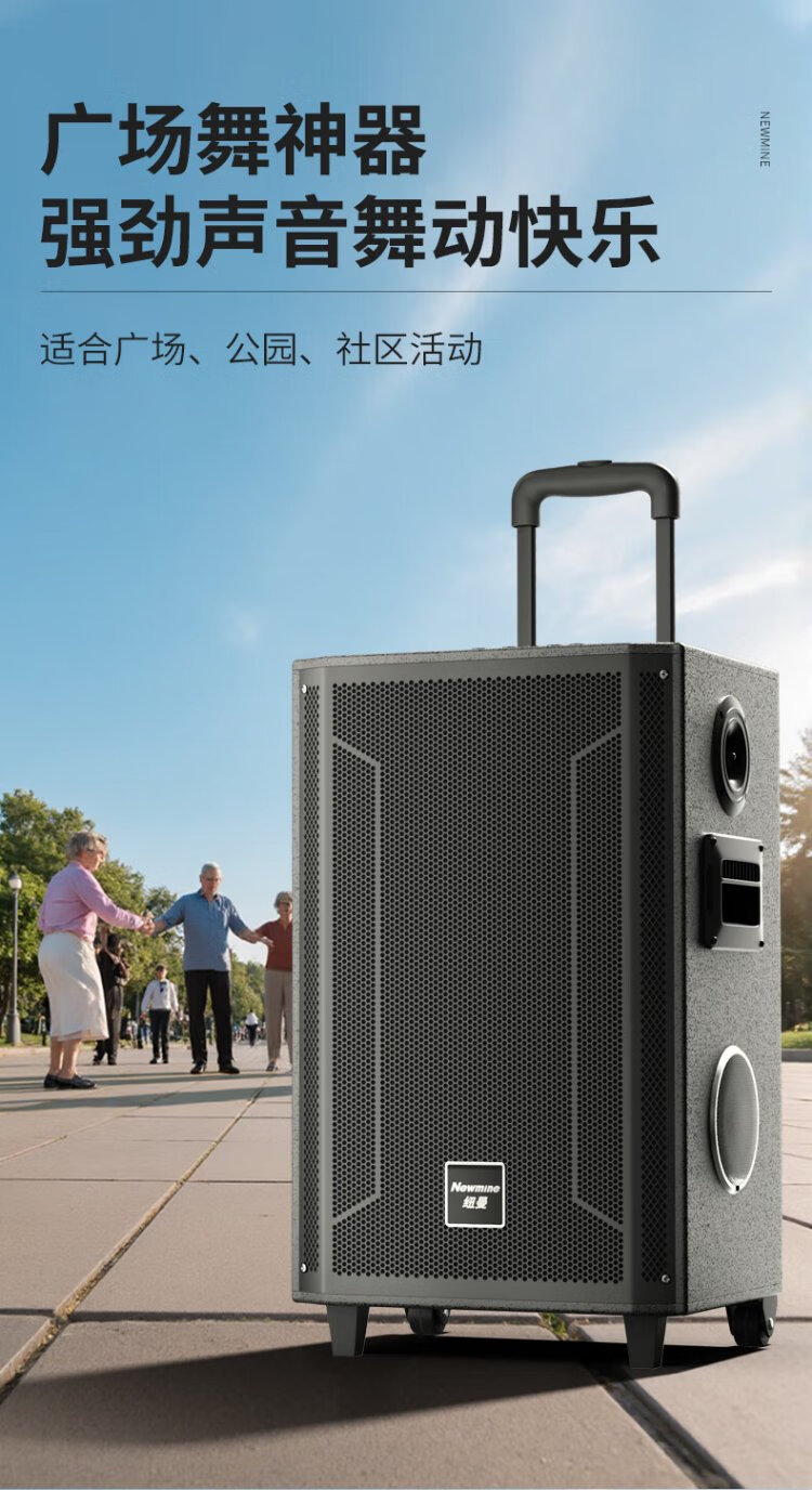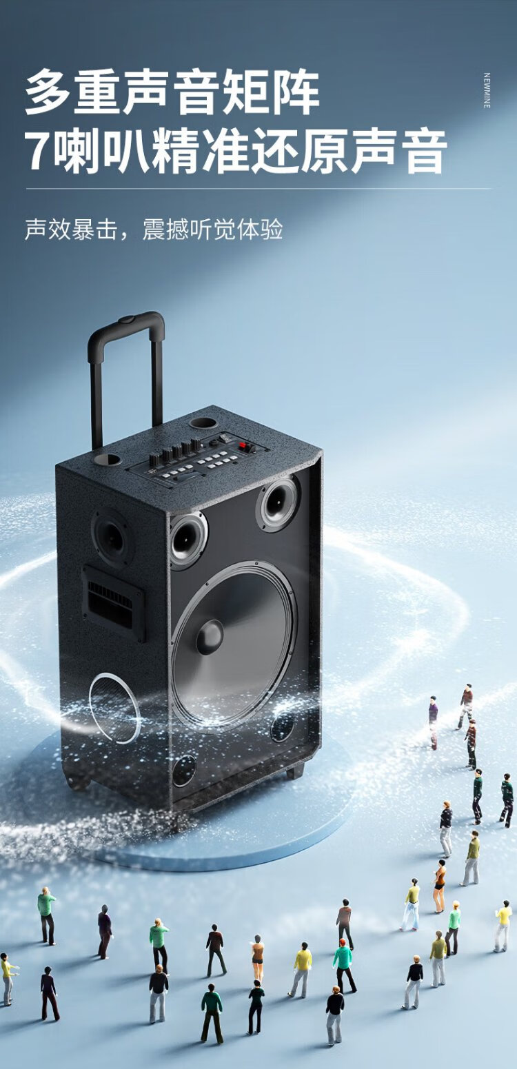 Newmine N530 12-inch square dance Bluetooth speaker high-power outdoor mobile portable trolley home karaoke high-volume wireless audio super long battery life dual microphone 7 speakers