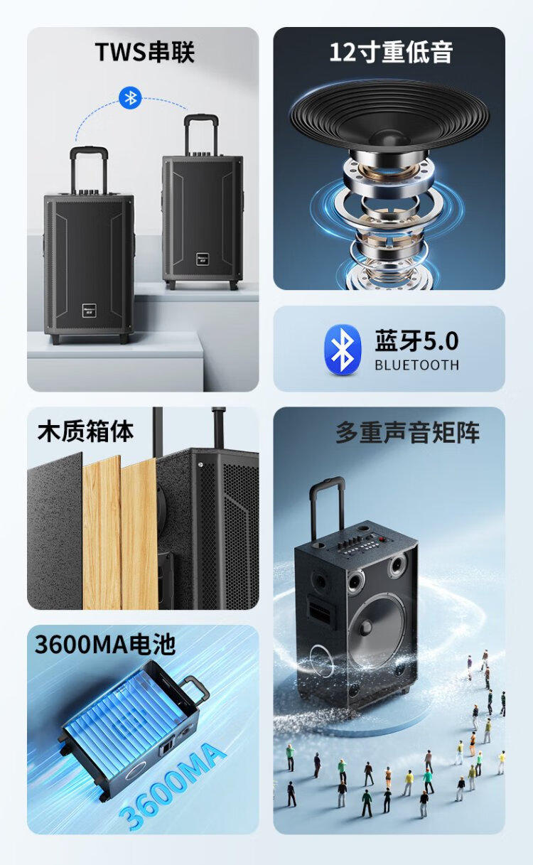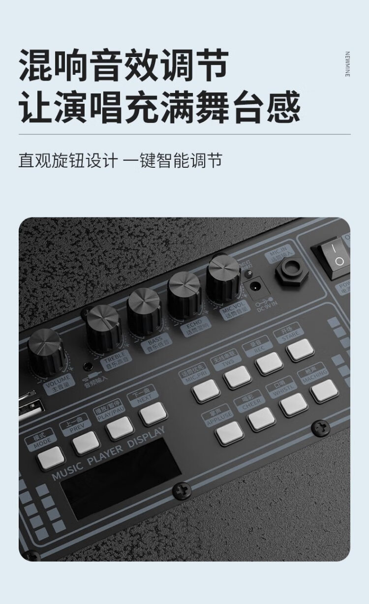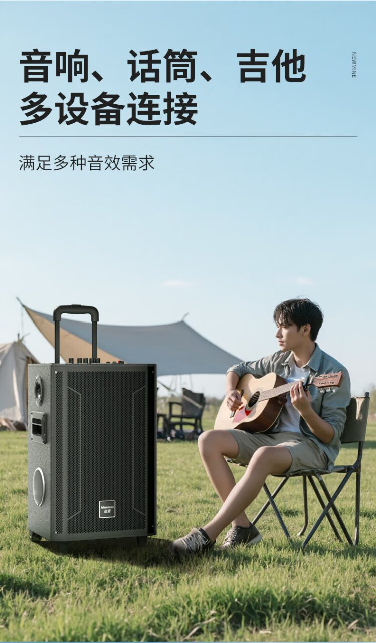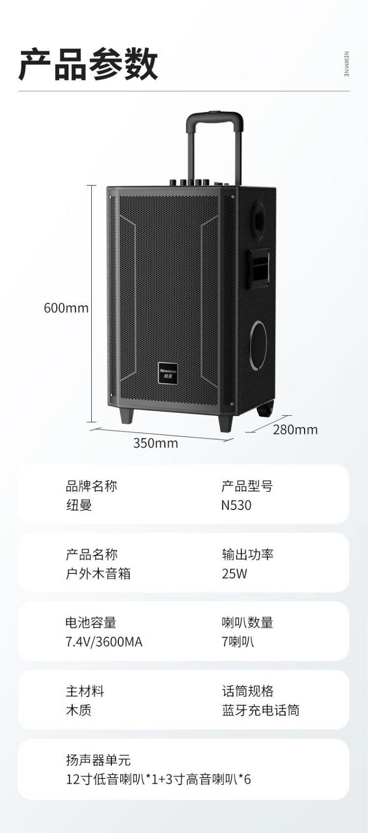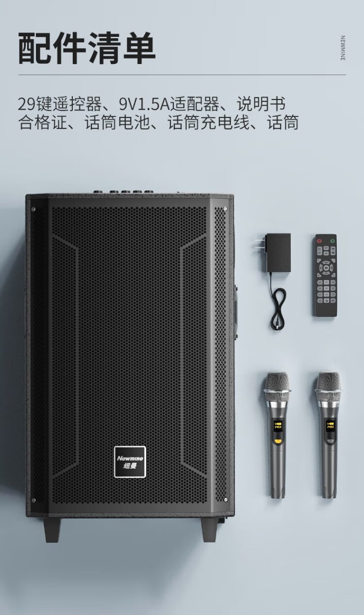 Newmine N530 12-inch square dance Bluetooth speaker high-power outdoor mobile portable trolley home karaoke high-volume wireless audio super long battery life dual microphone 7 speakers