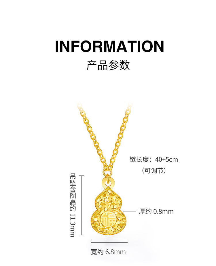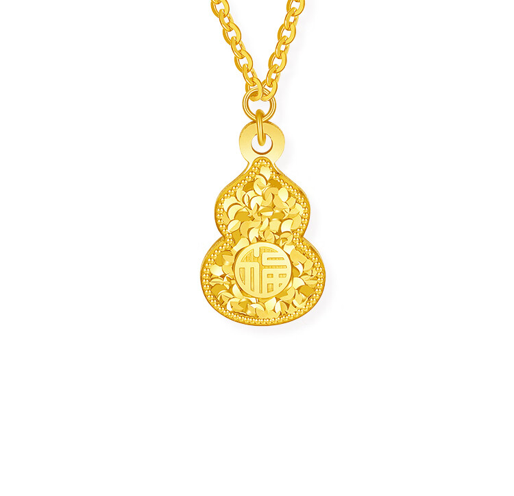 Saturday Blessing Yellow 18K Gold Necklace Women's Broken Gold Gourd Fulu Colorful Gold Necklace Birthday Gift C0620929 40+5cm
