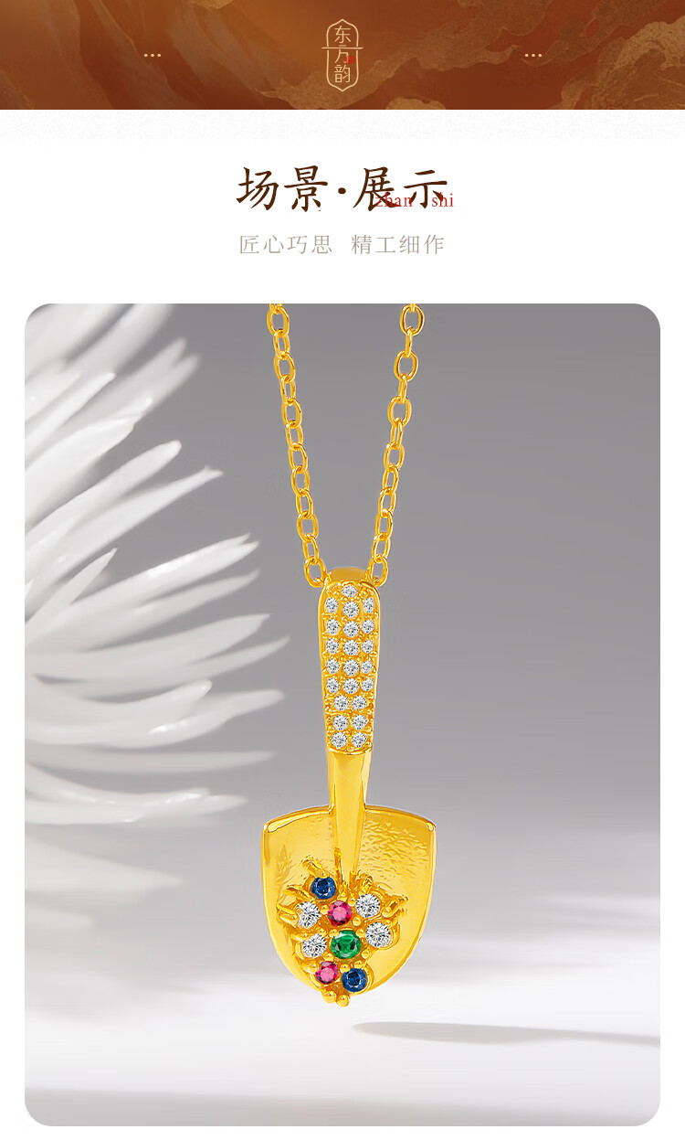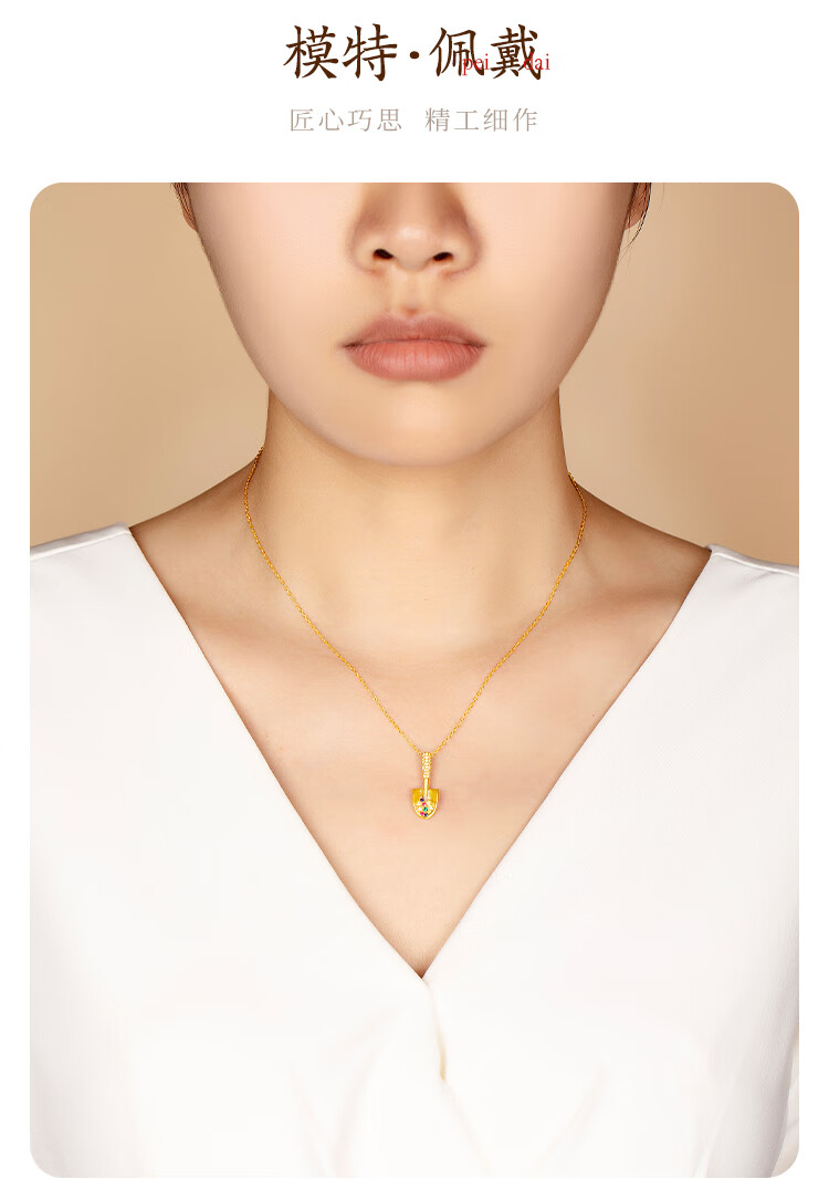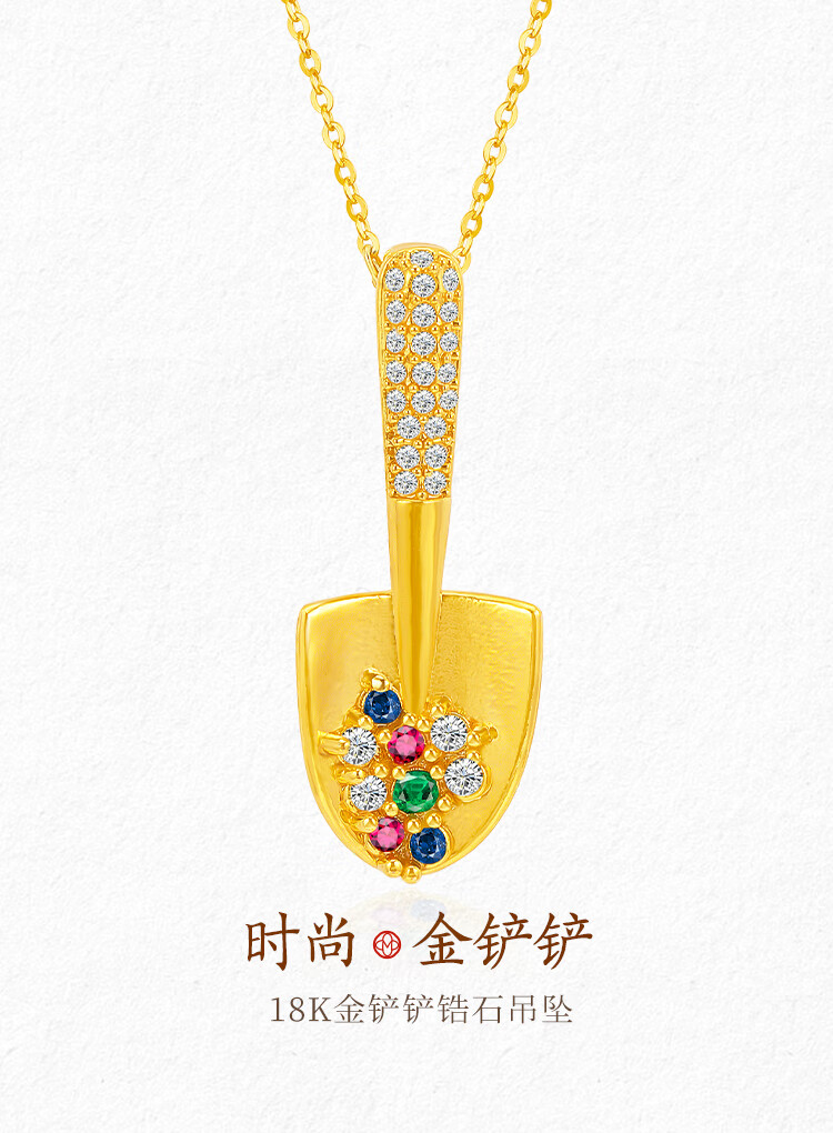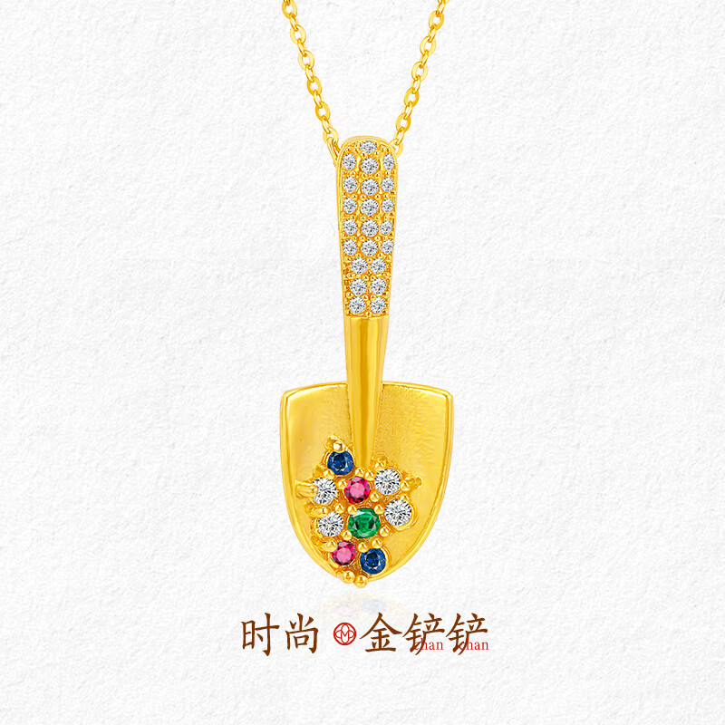 Mingzuan International 18K Gold Shovel Pendant Female au750 Full Color Diamond Sparkling Light Luxurious Necklace Birthday Gift for Girlfriend