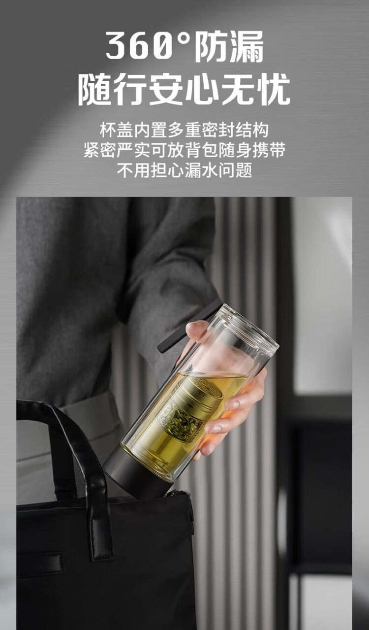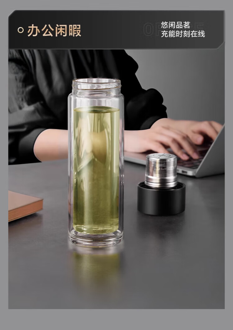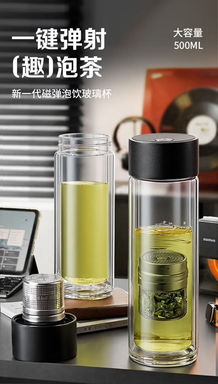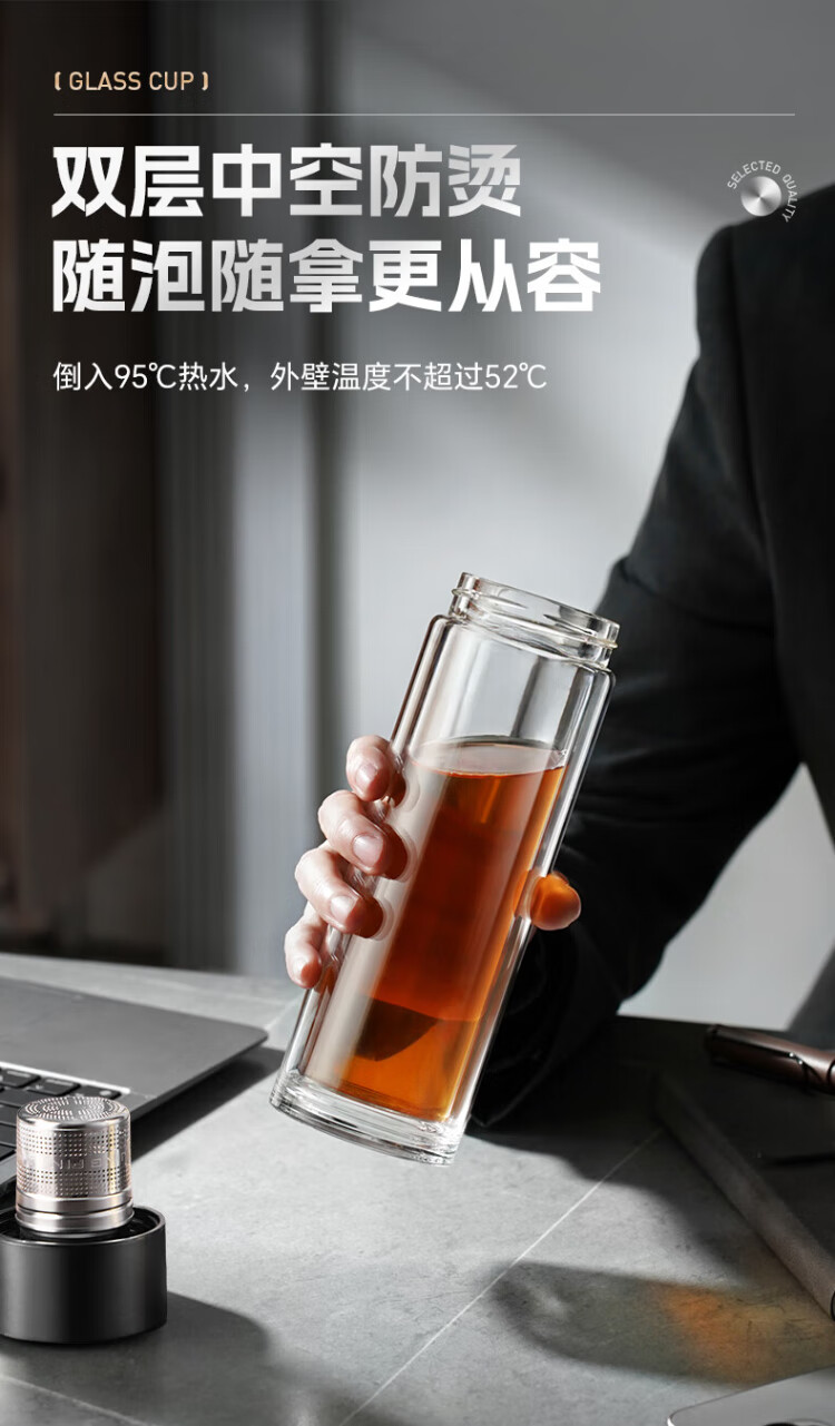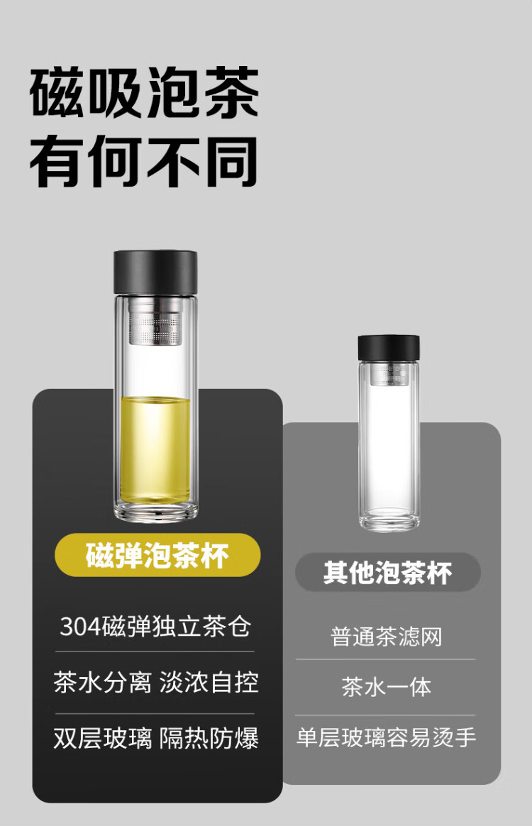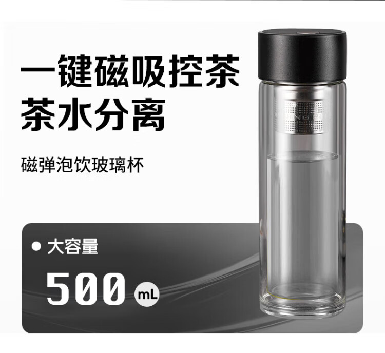 LINGCHEN tea cup for men, magnetic tea water separation, high temperature resistant executive leadership cup, double-layer glass magnetic tea cup