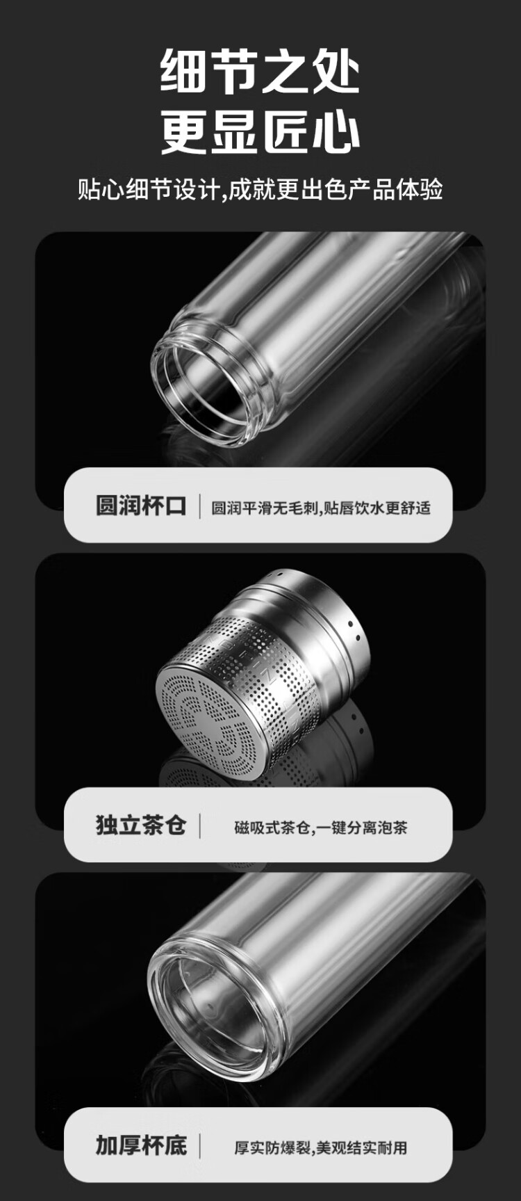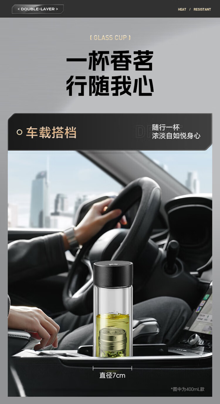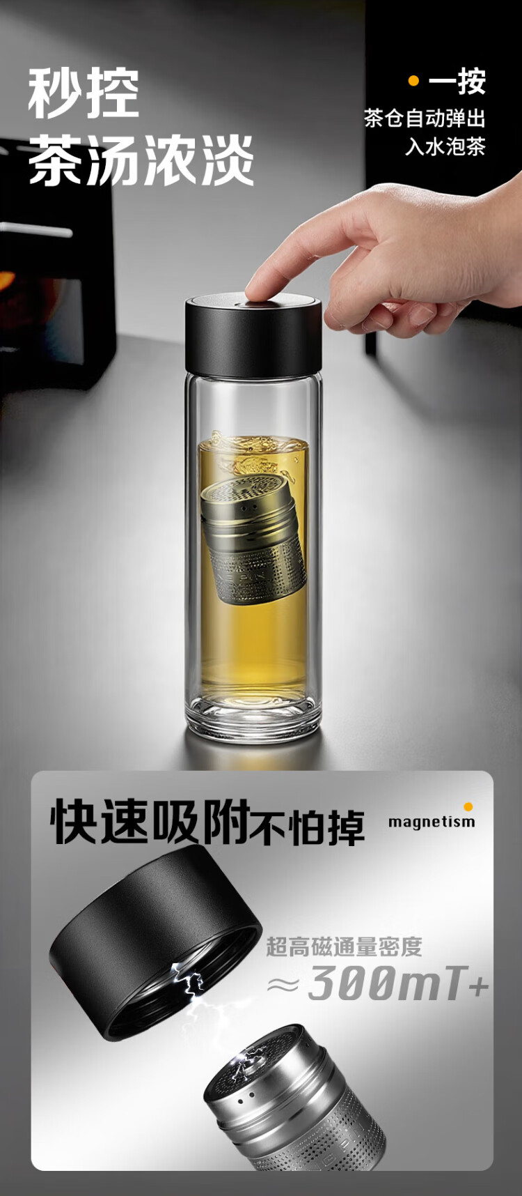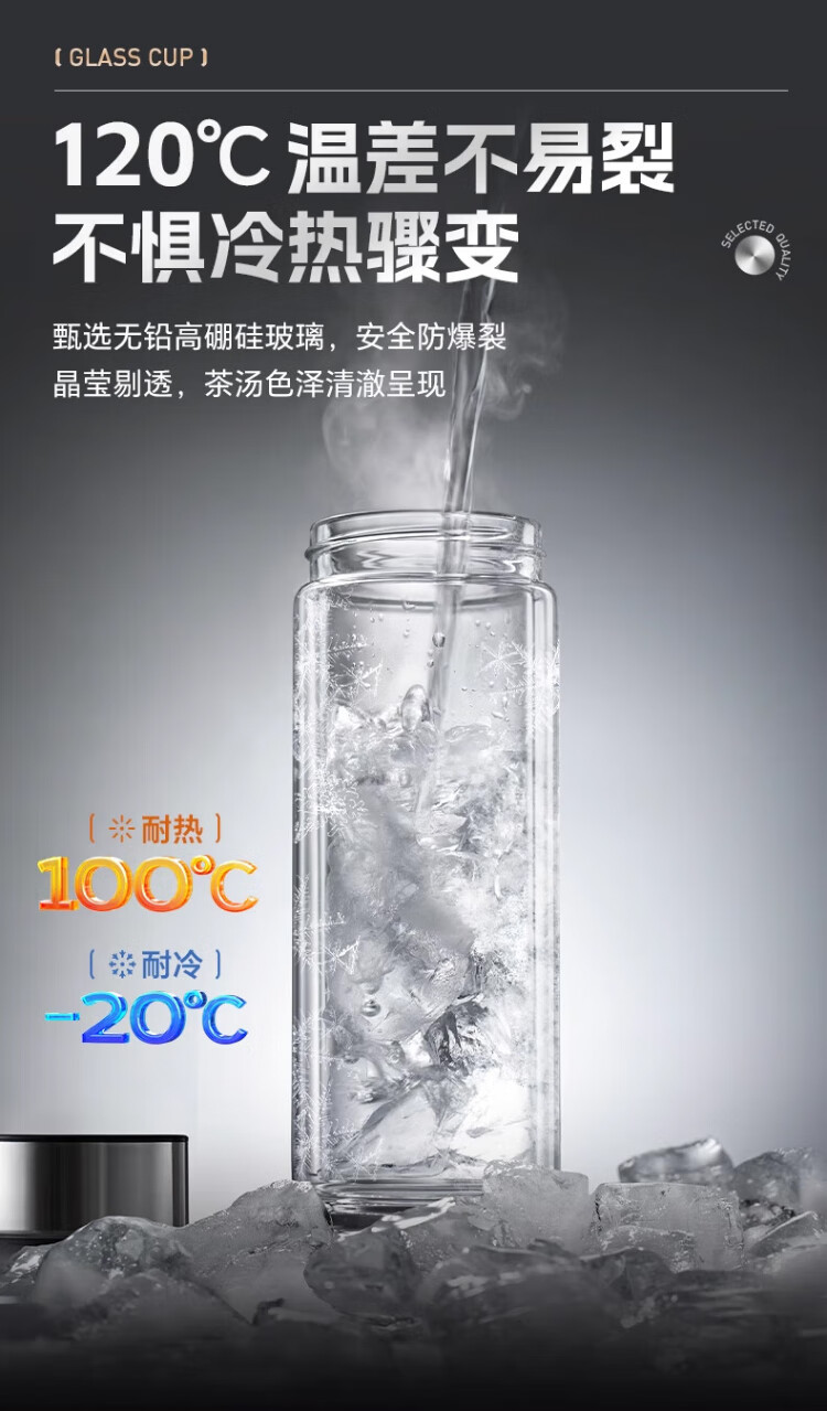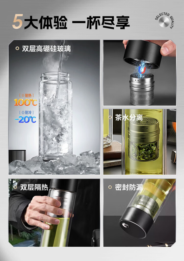 LINGCHEN tea cup for men, magnetic tea water separation, high temperature resistant executive leadership cup, double-layer glass magnetic tea cup