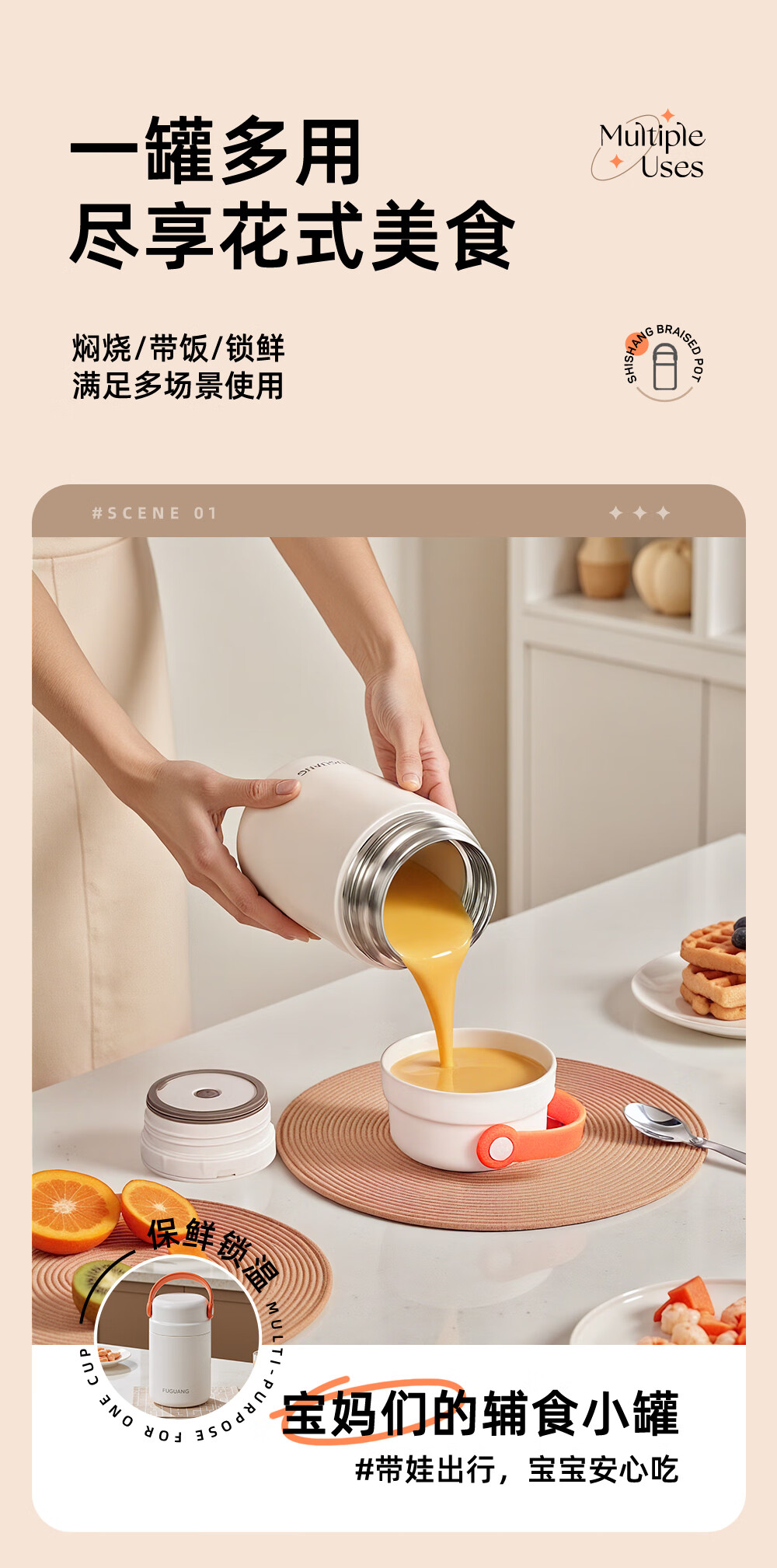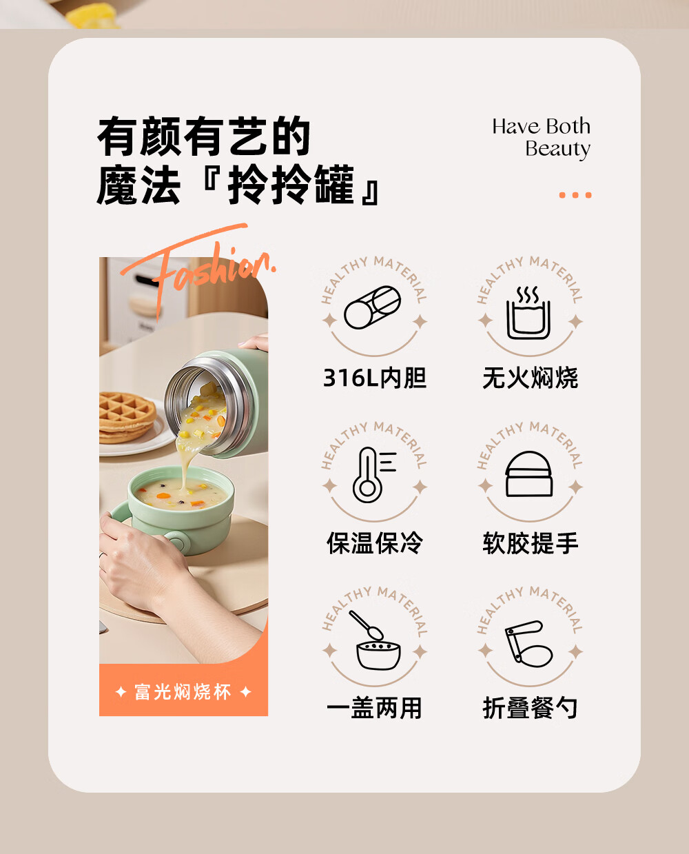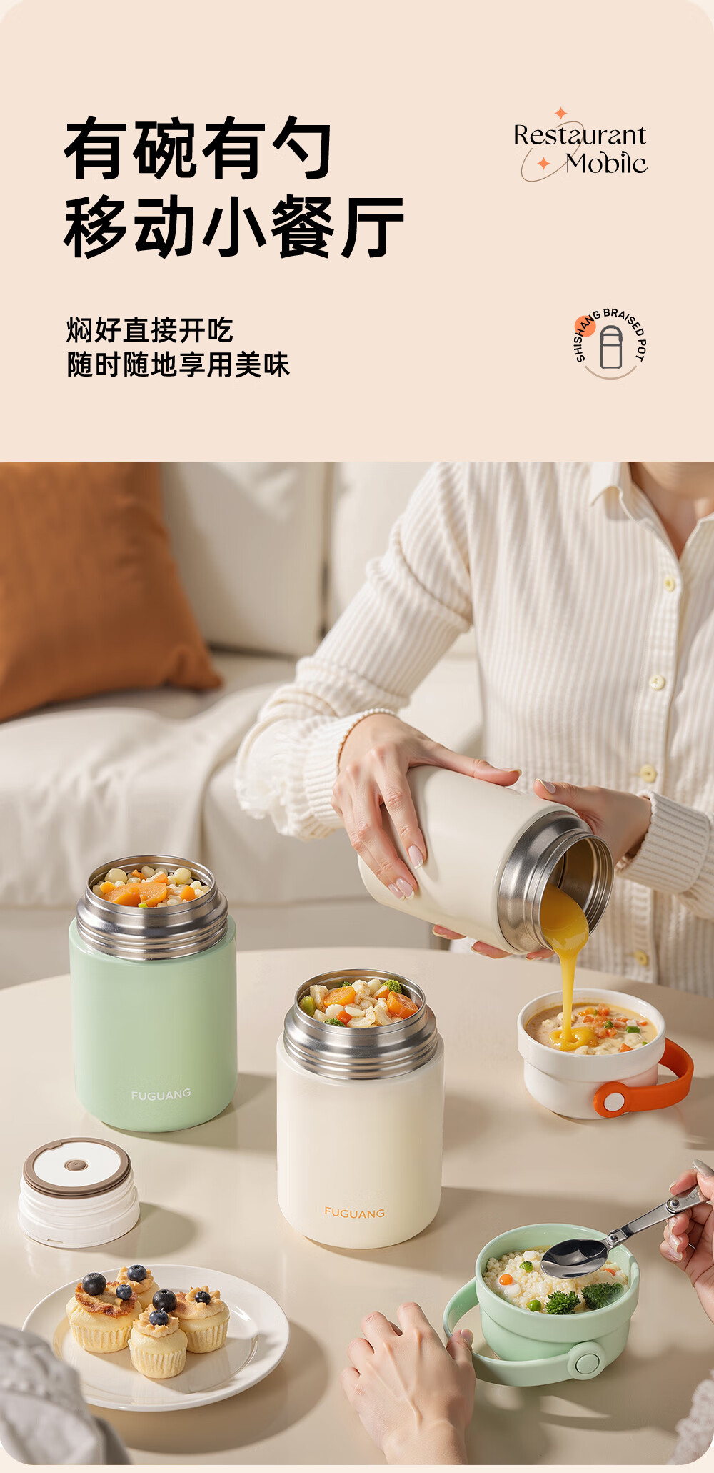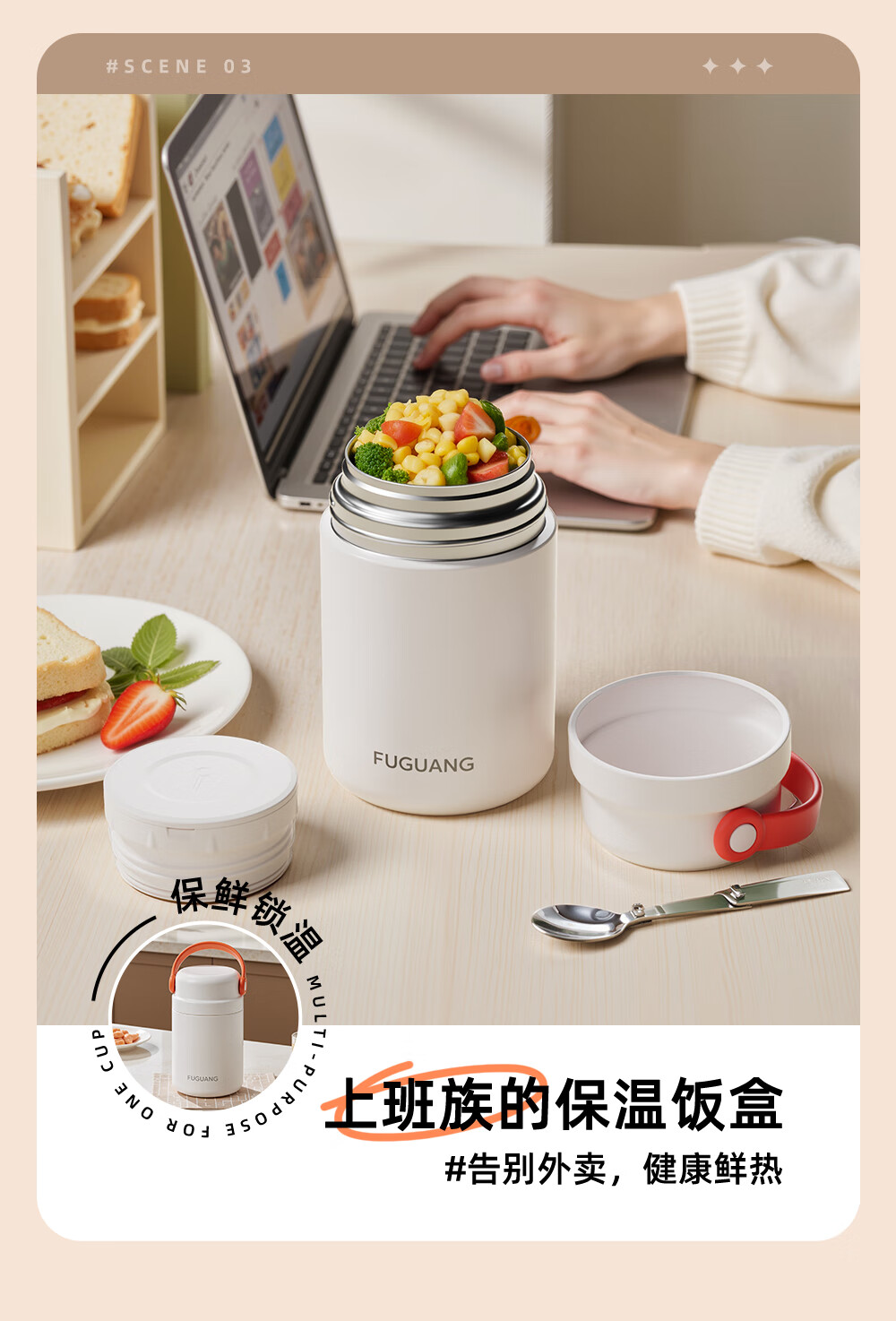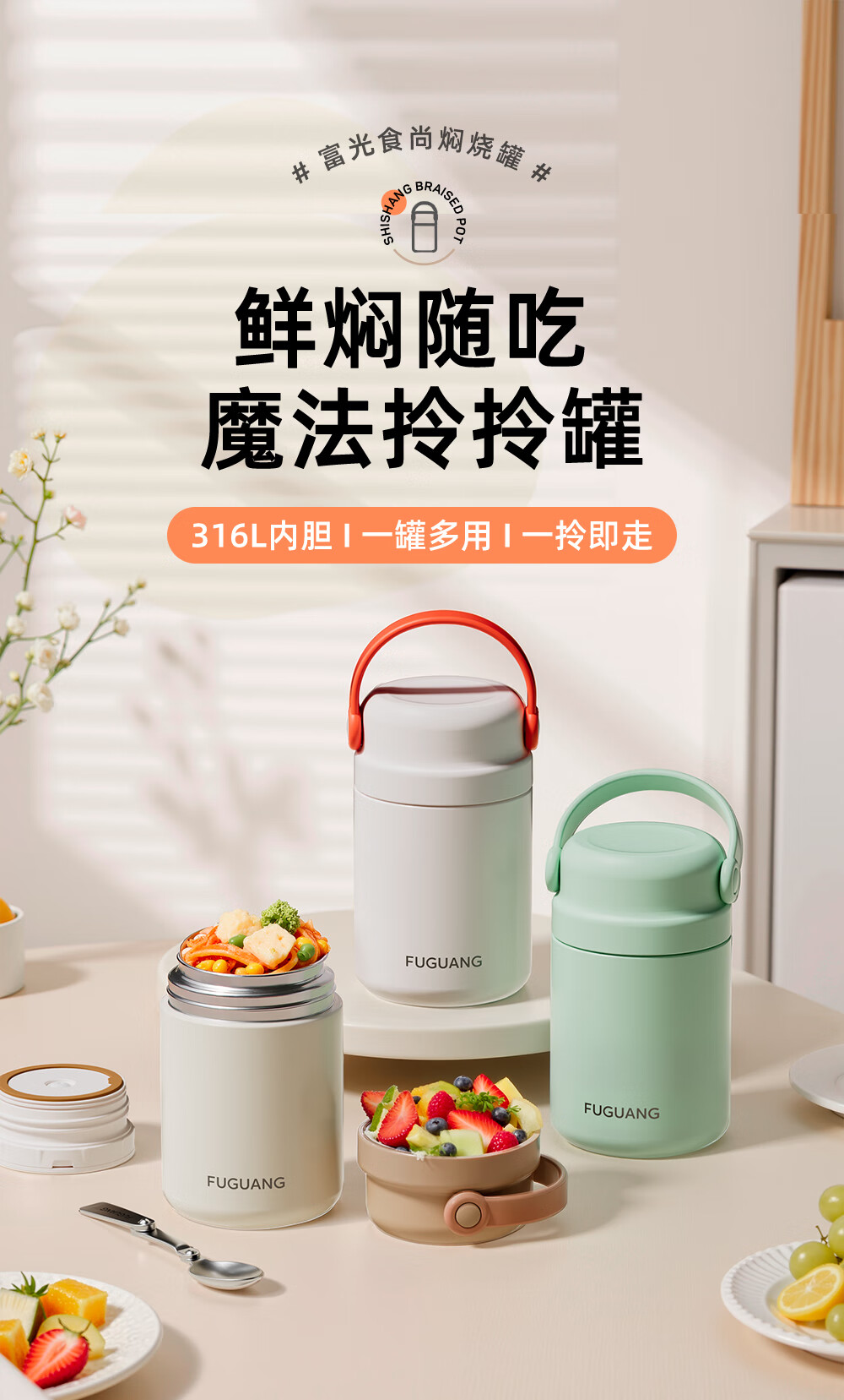 Fuguang thermal insulation pot 316L stainless steel student office worker thermal insulation large capacity rice bucket portable vacuum insulation bucket