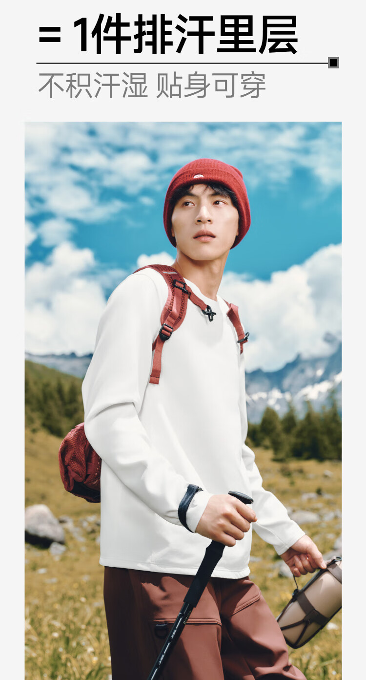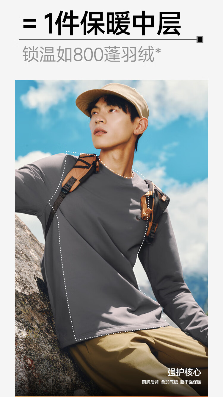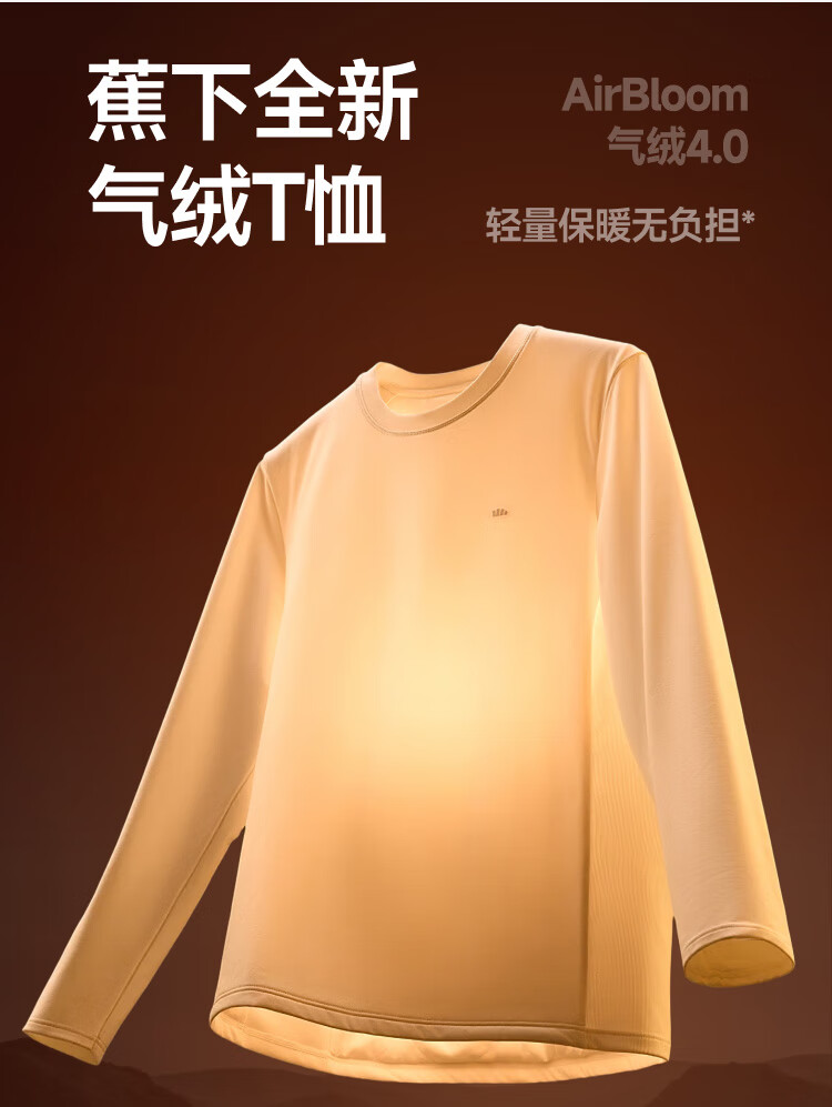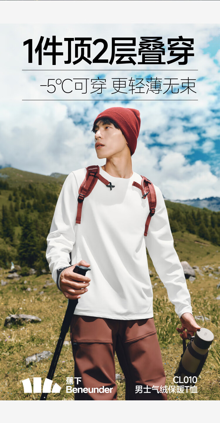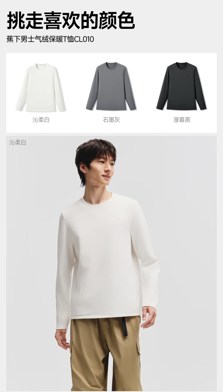 Beneunder long-sleeved T-shirt men's sweatshirt air fleece warm bottoming shirt round neck loose and comfortable CL010 soft white L