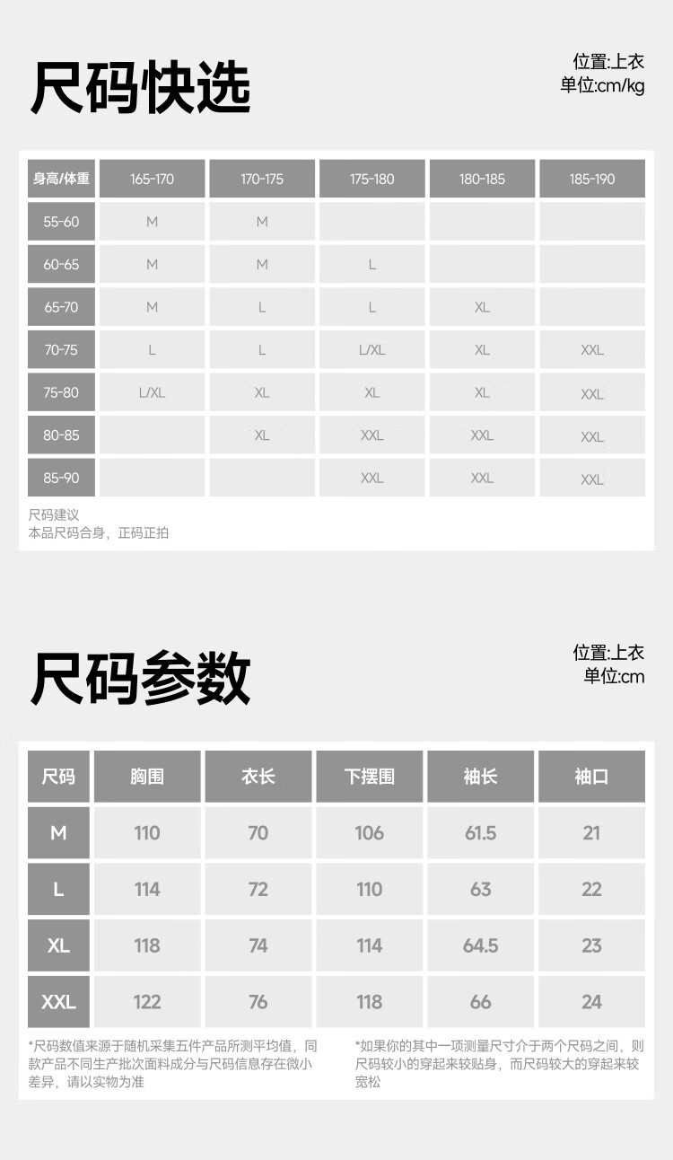 China (cm) 165 / 88-90 170 / 96-98 175 / 108-110 180 / 118-122 185 / 126-130