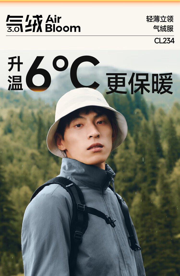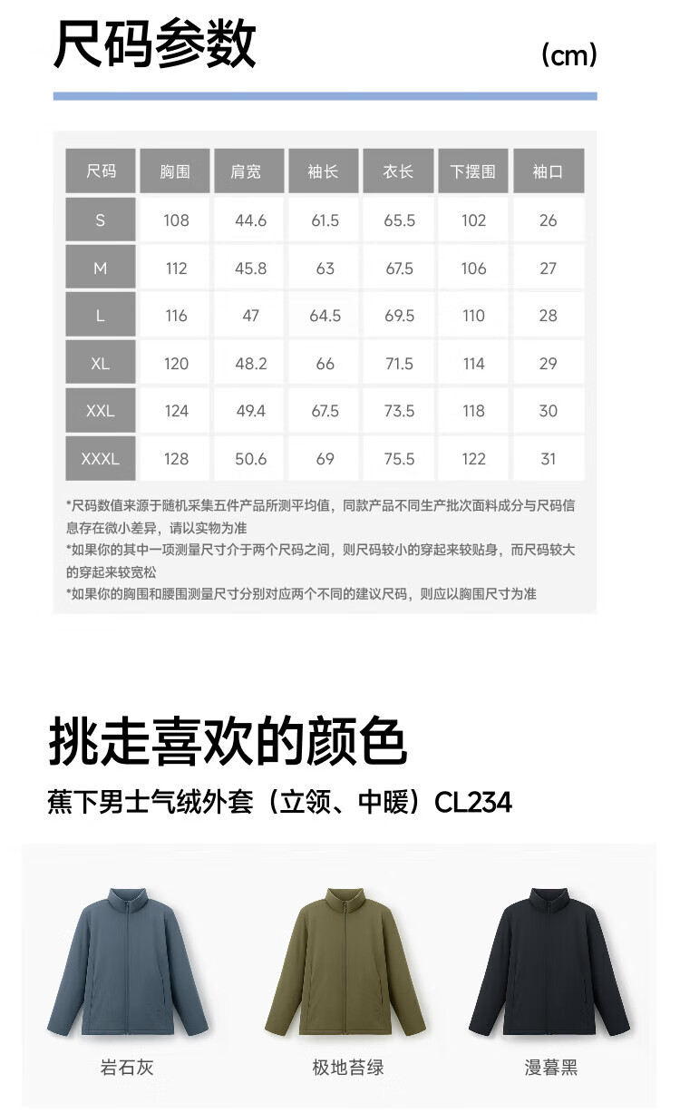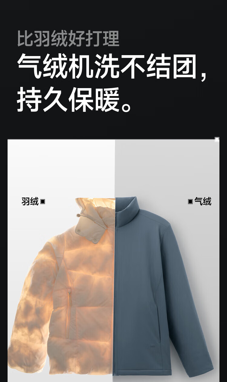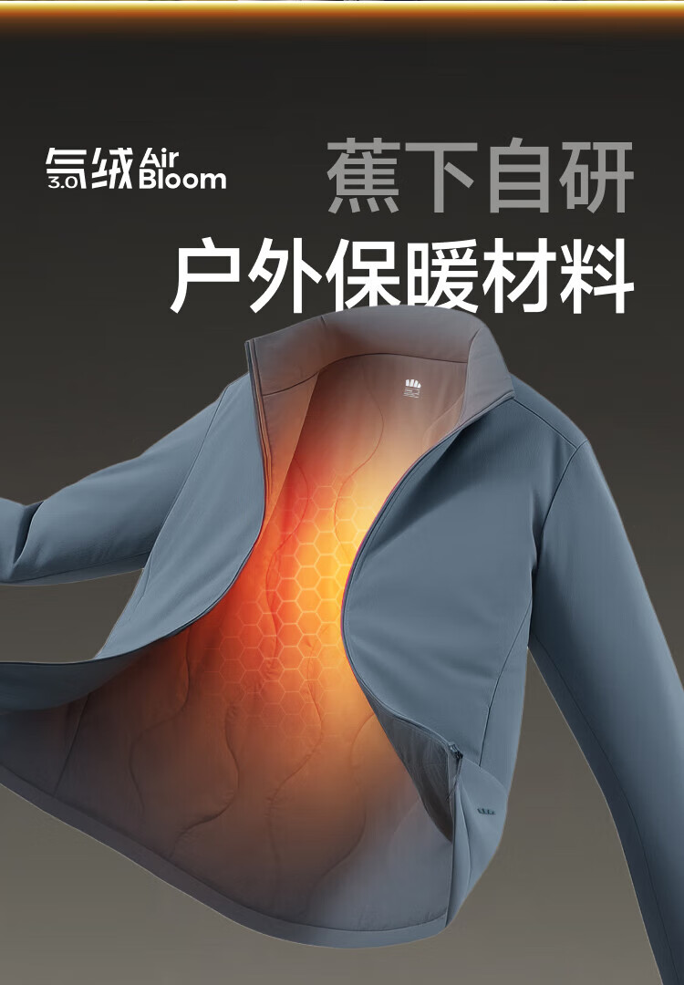 Beneunder jacket men's stand-up collar jacket cotton jacket air fleece mid-warm outdoor casual CL234 dusk black M