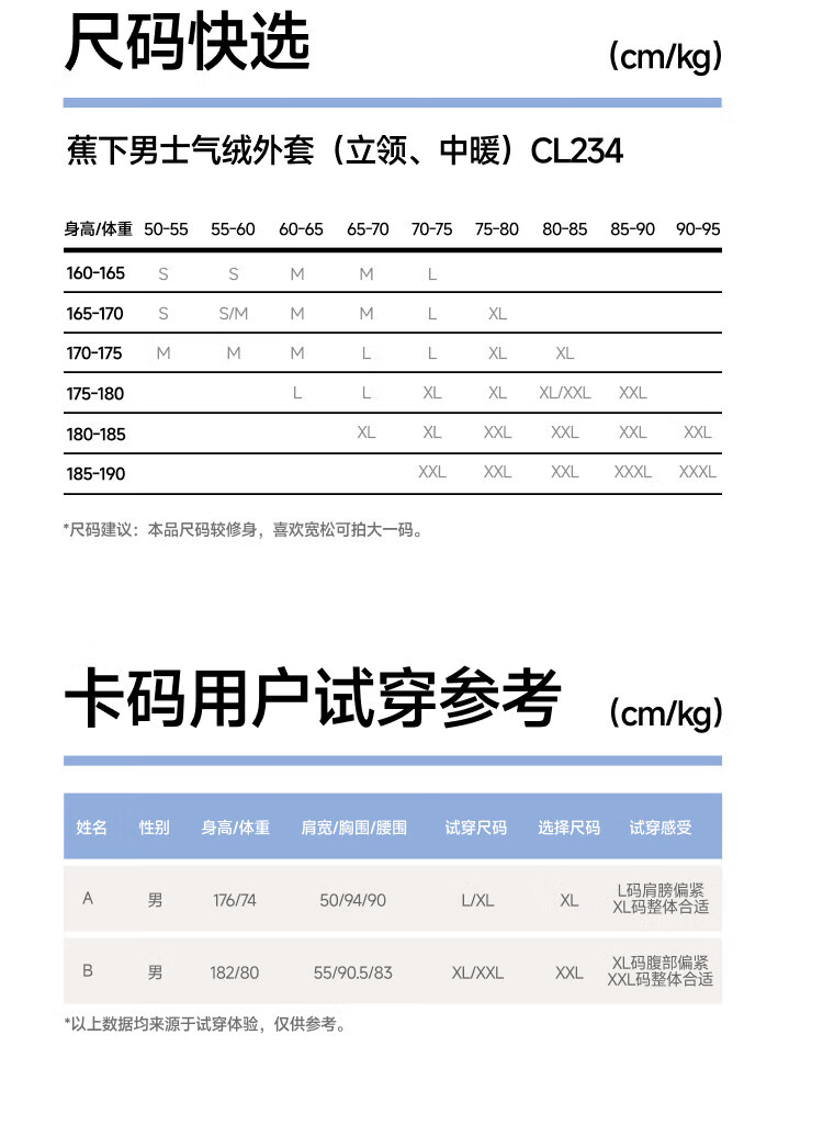 China (cm) 160-165/84-86 165-170 / 88-90 167-172 / 92-96 168-173 / 98-102 170-176 / 106-110