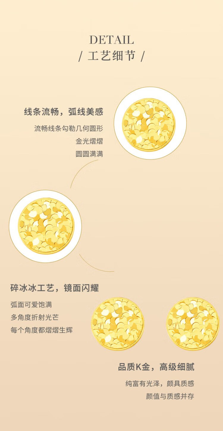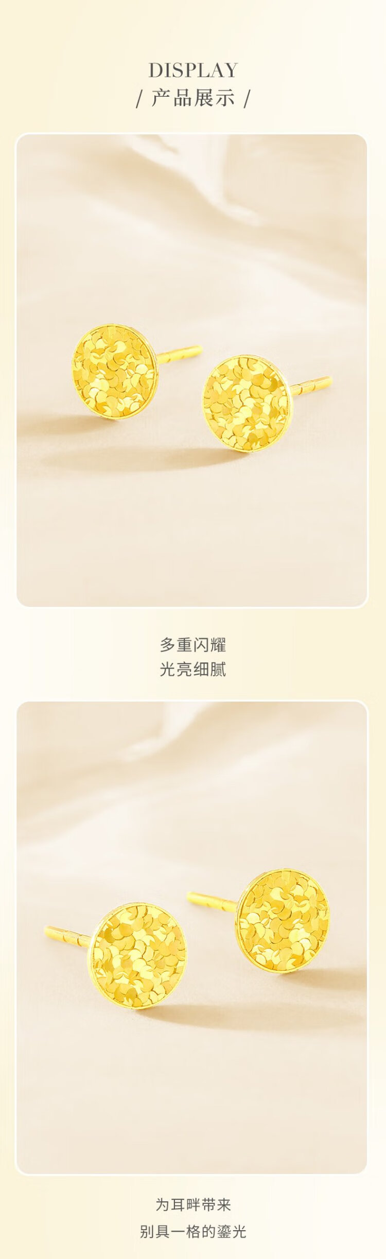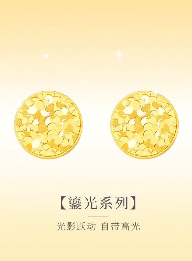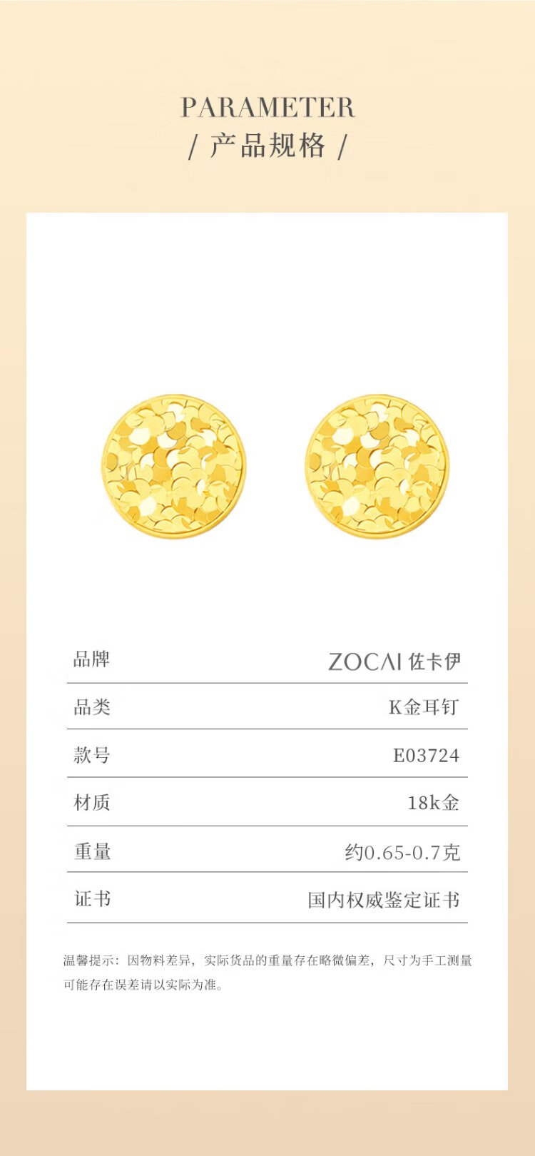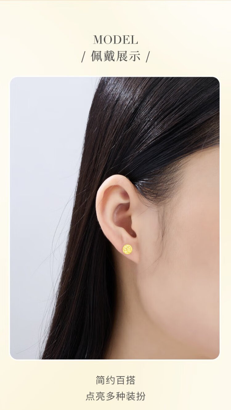 Zokai K gold earrings yellow 18K gold round crushed ice simple and versatile birthday gift E03724