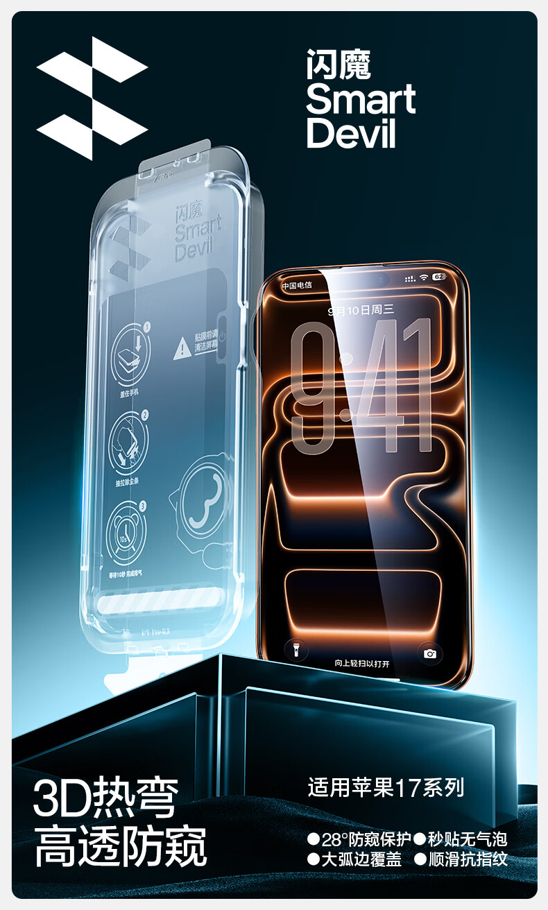 Flash Magic is suitable for Apple 17promax anti-peeping tempered film iphone17ProMax mobile phone film 0.18mm ultra-thin 3D full screen high transparency without mesh anti-peeping and anti-fingerprint