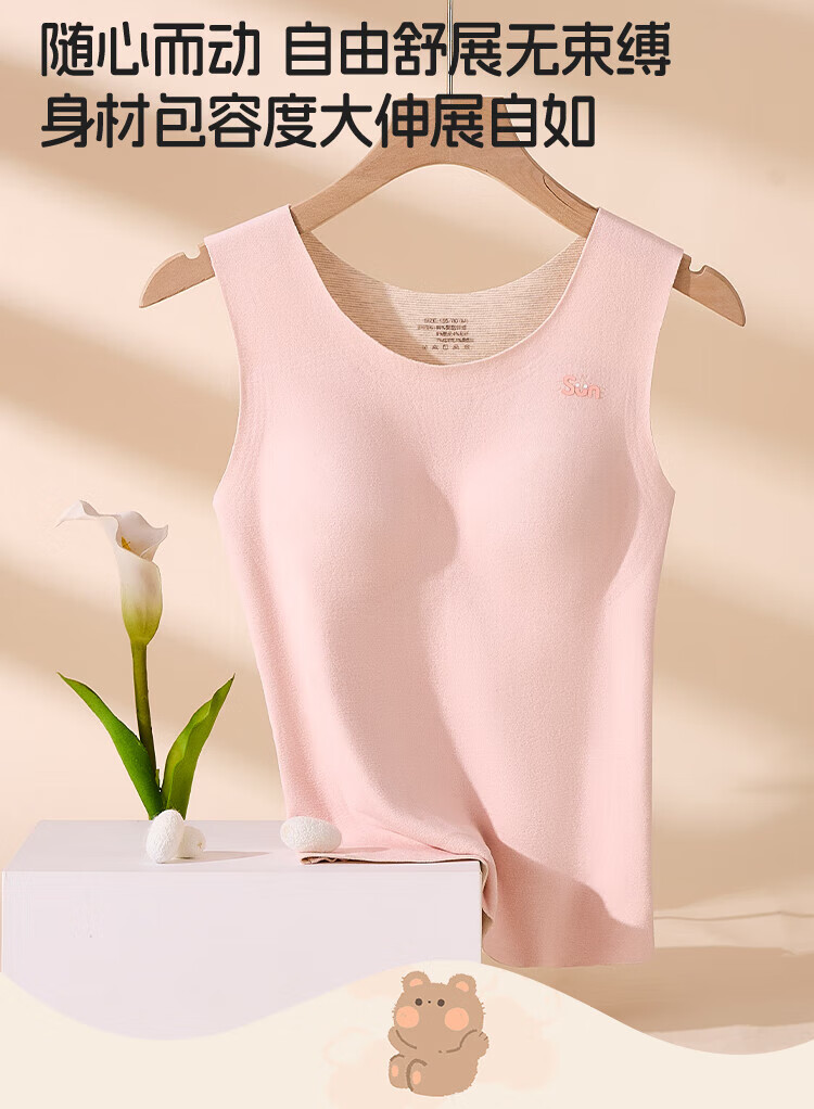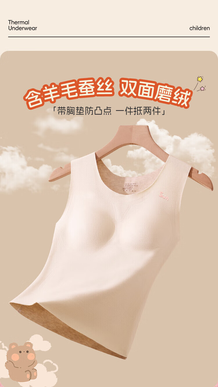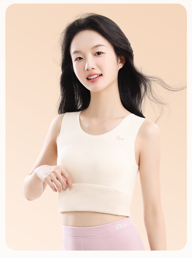 Urban Beauty Children's Underwear Girls Development Period Warm Vest with Breast Pad Integrated Seamless Autumn and Winter Thickened Bottoming