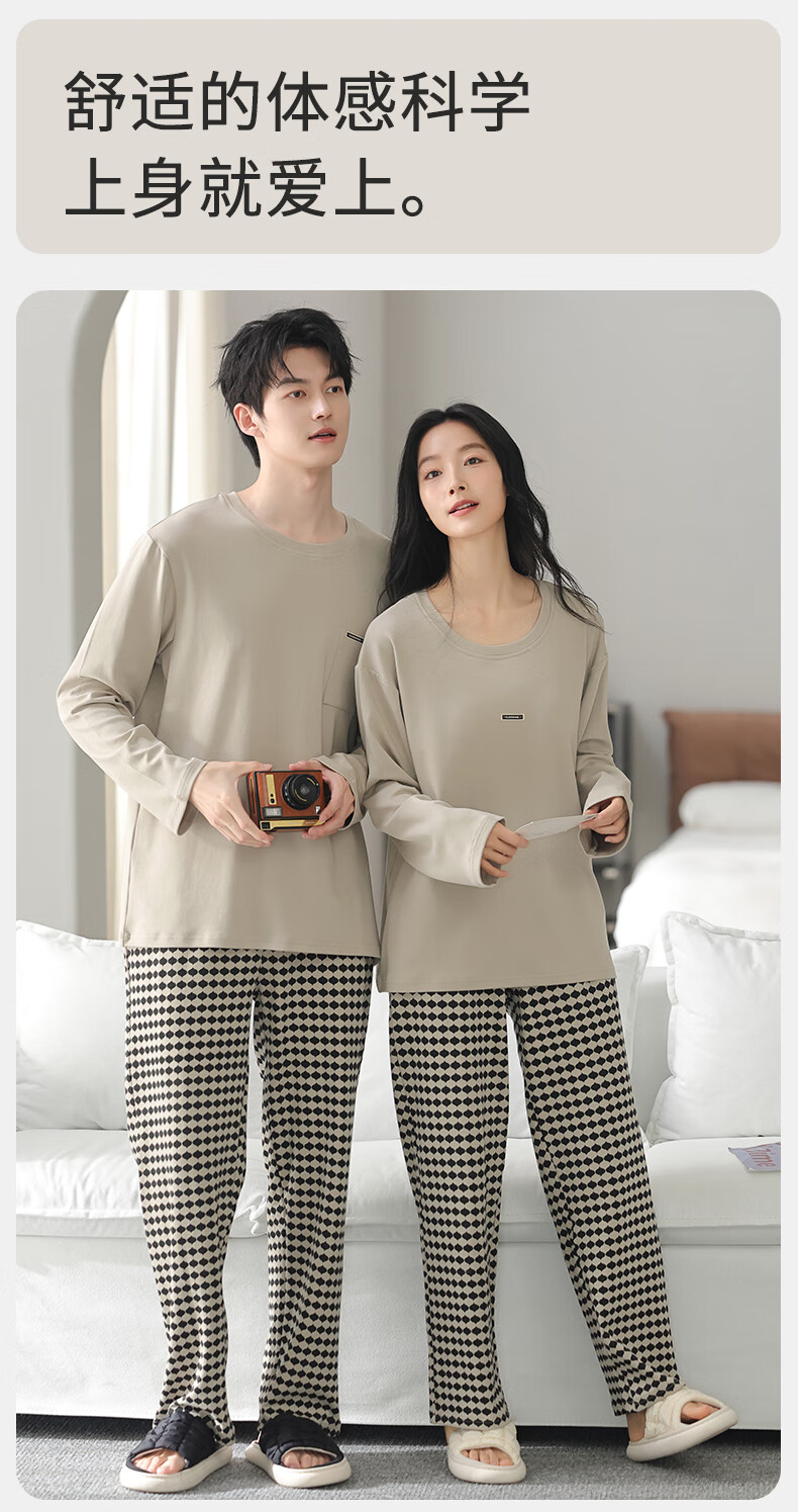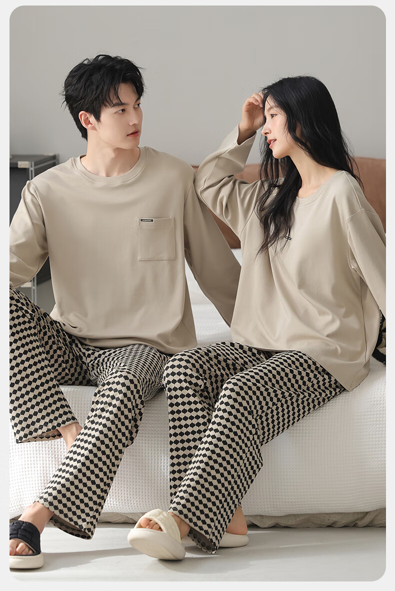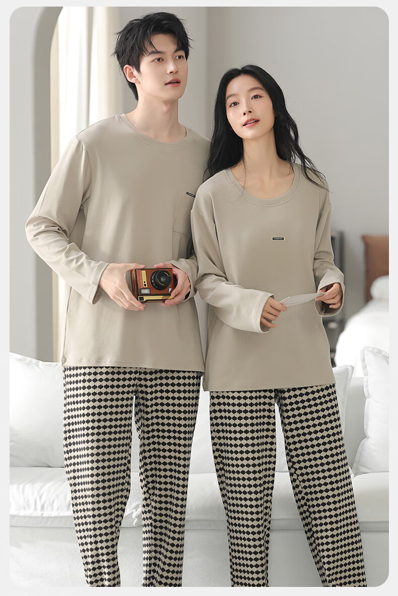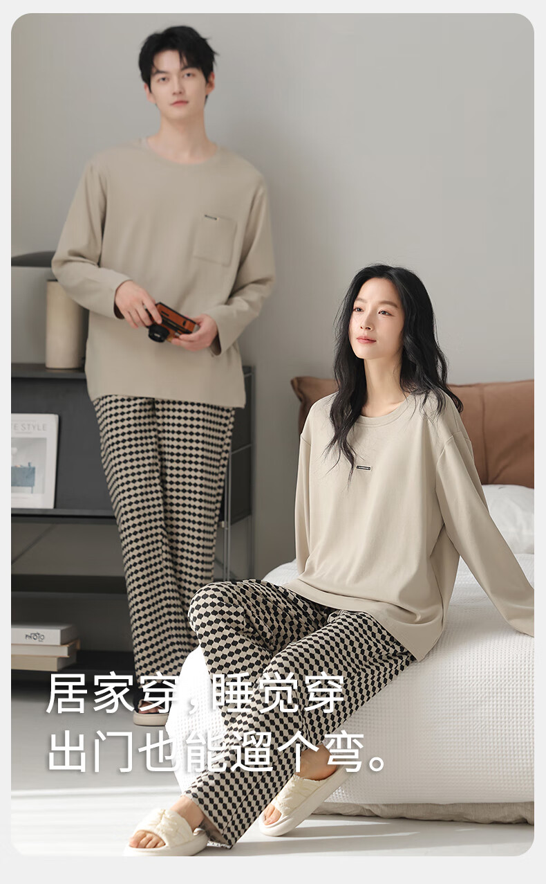 Ancient and modern (GUJIN) couple's pajamas for women, autumn and winter, men's pure cotton casual home clothes, can be worn outside pajamas, large size loose suit XL
