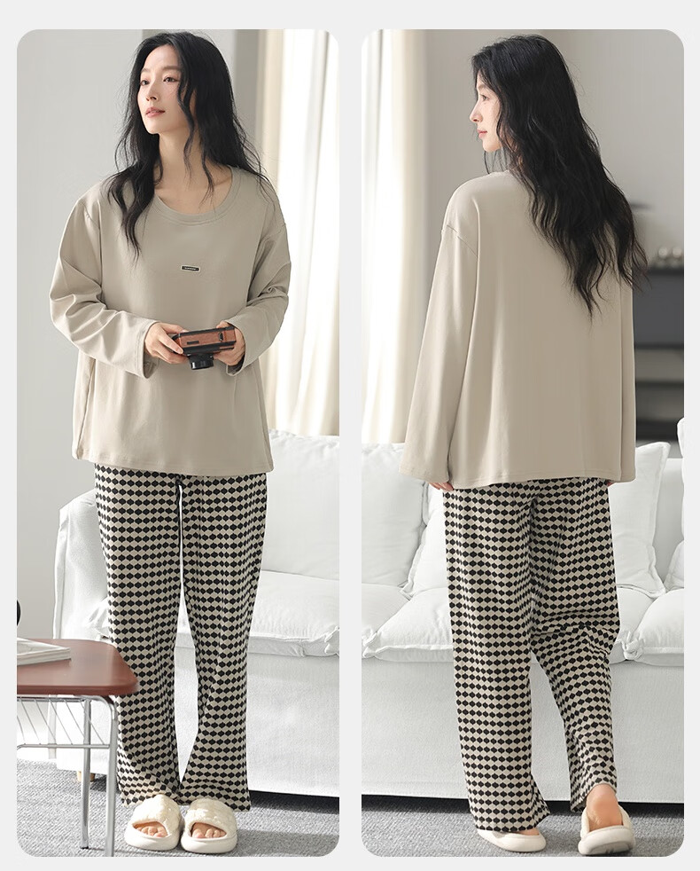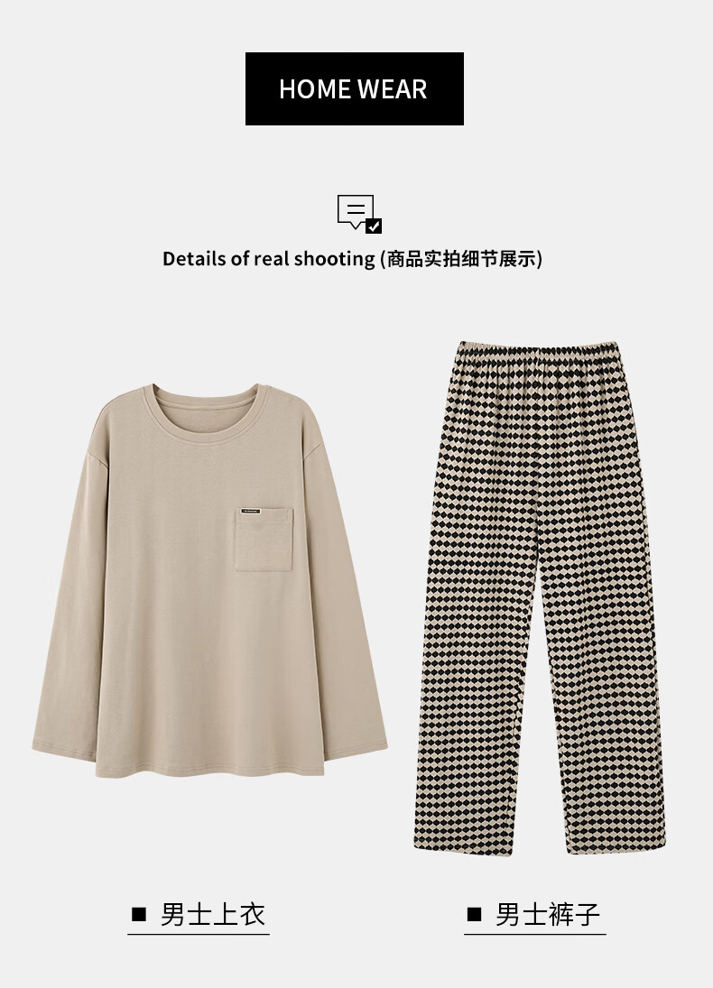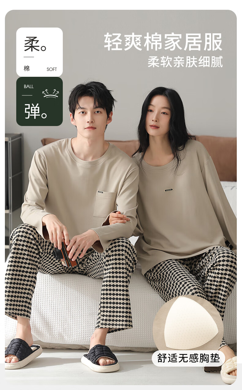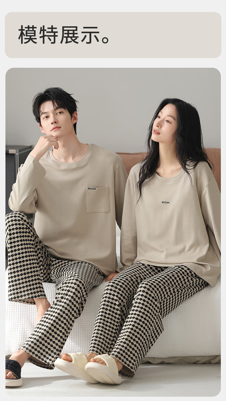 Ancient and modern (GUJIN) couple's pajamas for women, autumn and winter, men's pure cotton casual home clothes, can be worn outside pajamas, large size loose suit XL