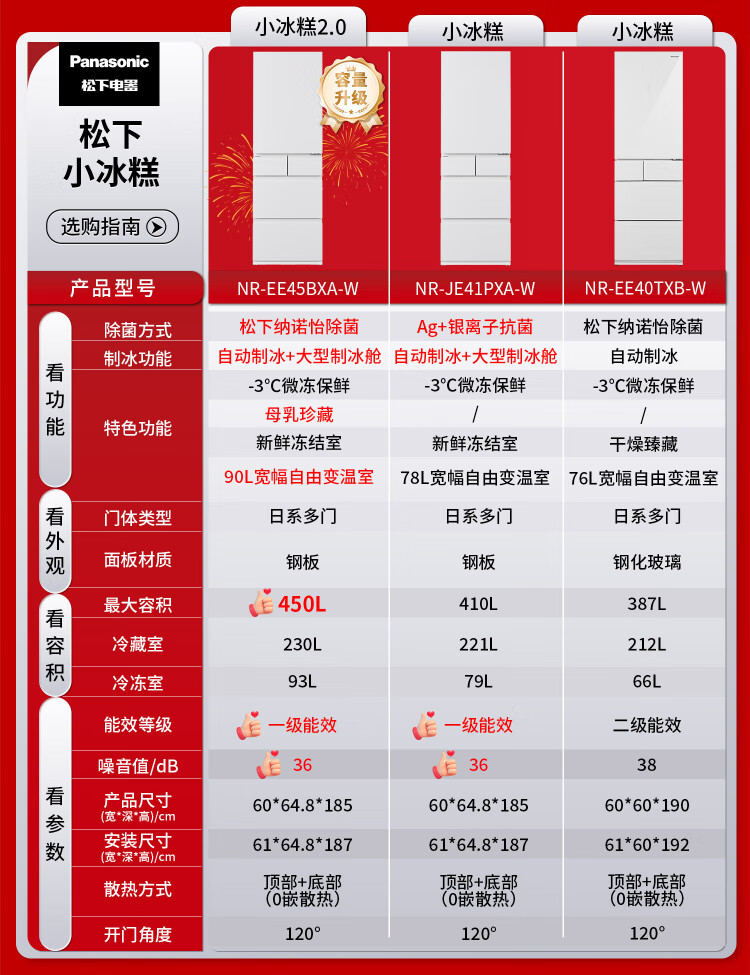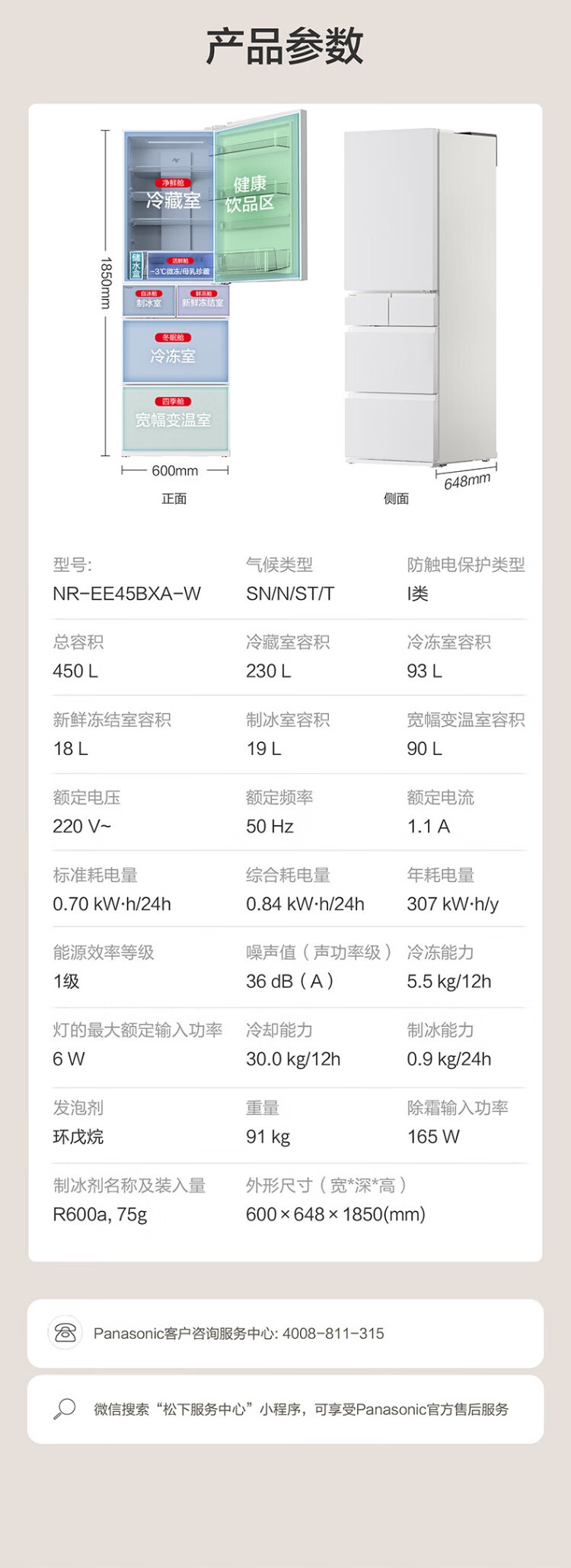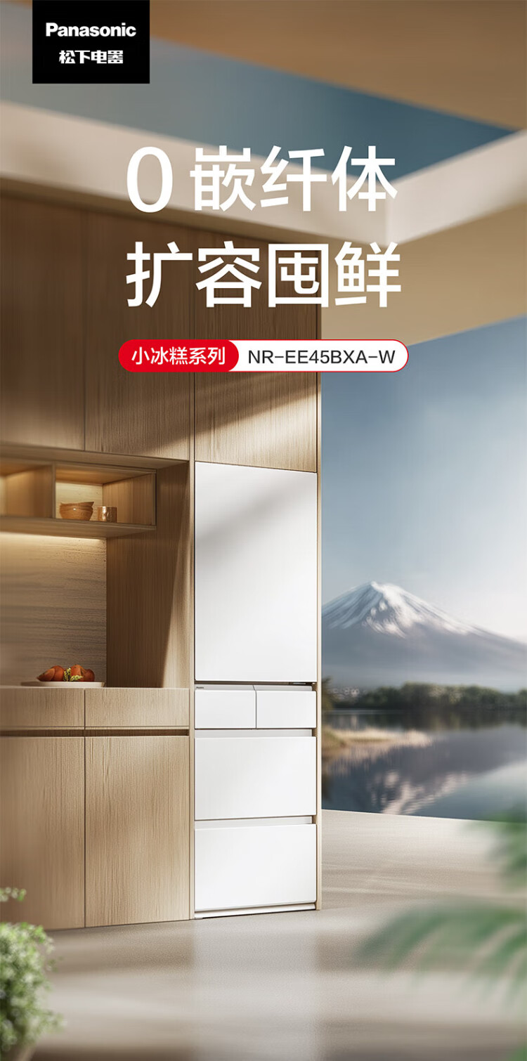Panasonic's national subsidy is 20%. Small Sorbet 2.0 Japanese multi-door refrigerator French small apartment 450 household ultra-thin frost-free automatic ice making first-level energy efficiency NR-EE45BXA-W