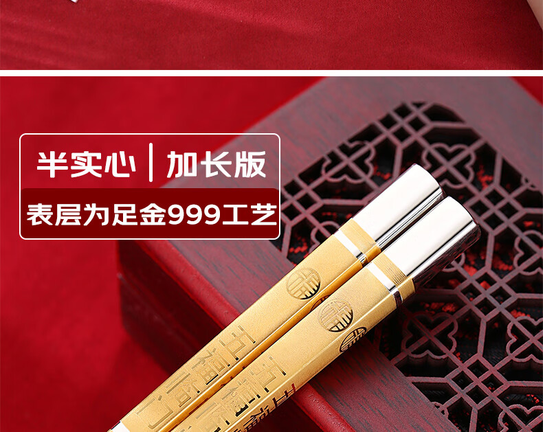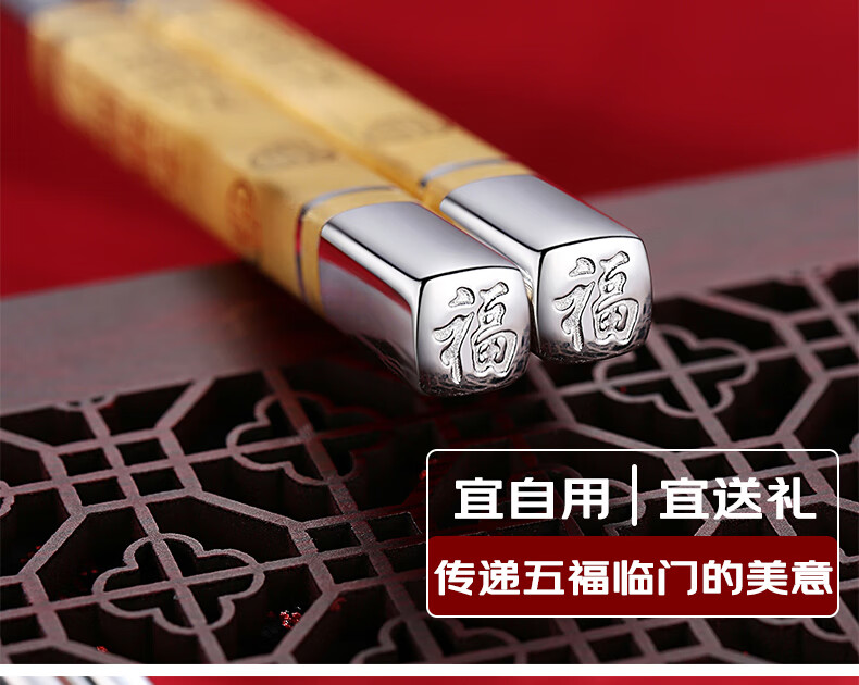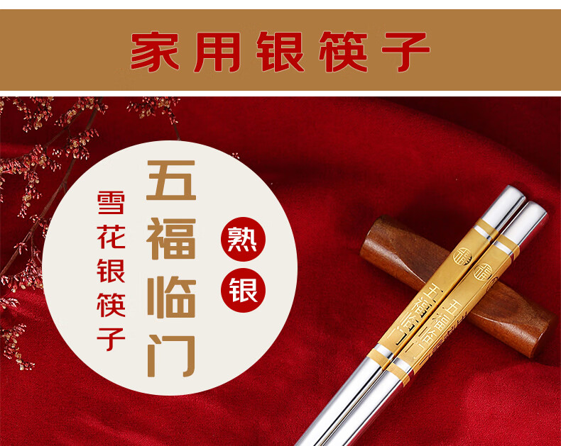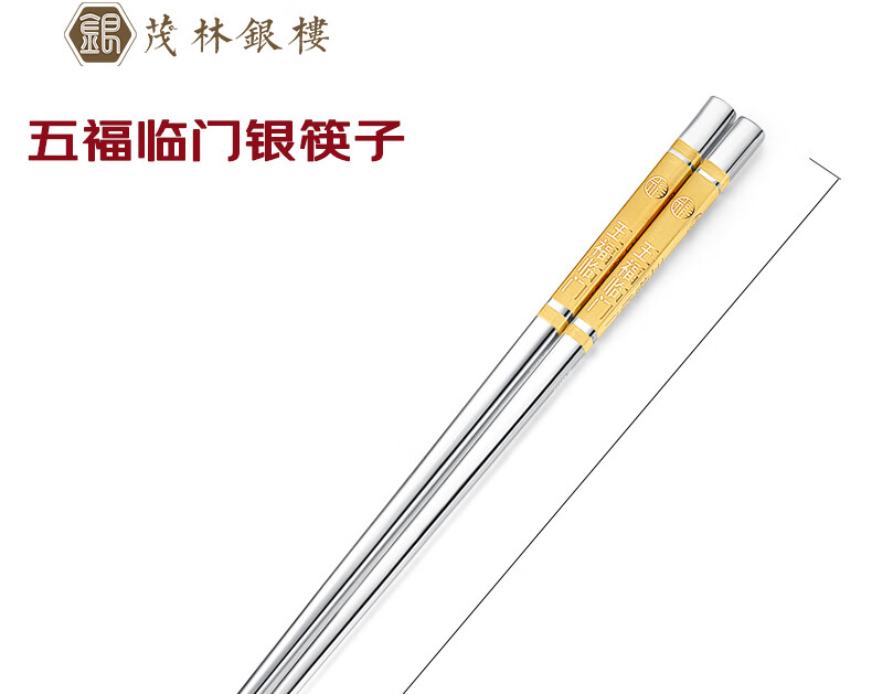 Maolin Yinlou pure silver 999 chopsticks, high-end semi-solid Wufulinmen safe edible snowflake silver male chopsticks, household portable Wufulinmen silver chopsticks (gold-painted)