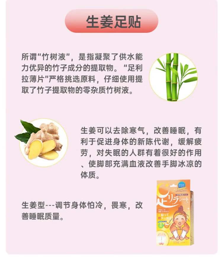 Shuzhihui foot beauty natural bamboo sap mugwort*2 ginger foot patches*1 imported from Japan 30 patches/box