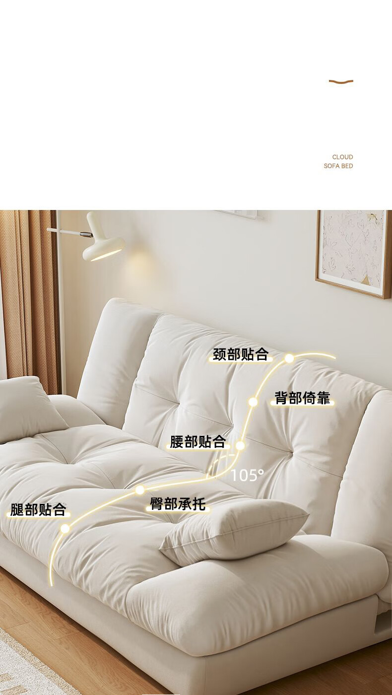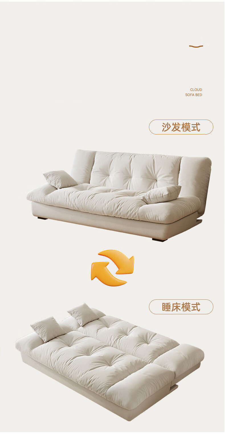Warner new cream style technology velvet sofa bed foldable dual-purpose fabric sofa 2025 new small apartment