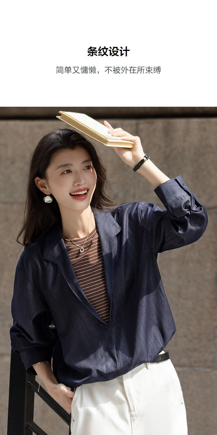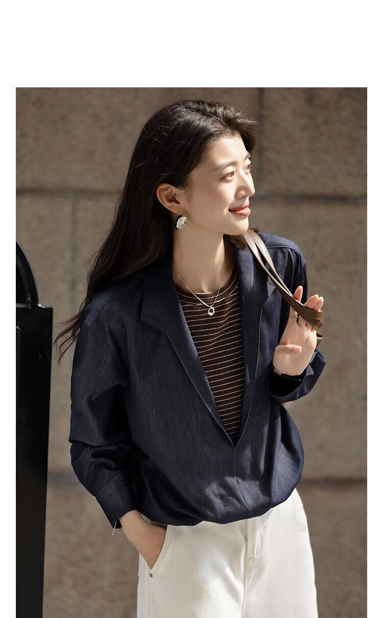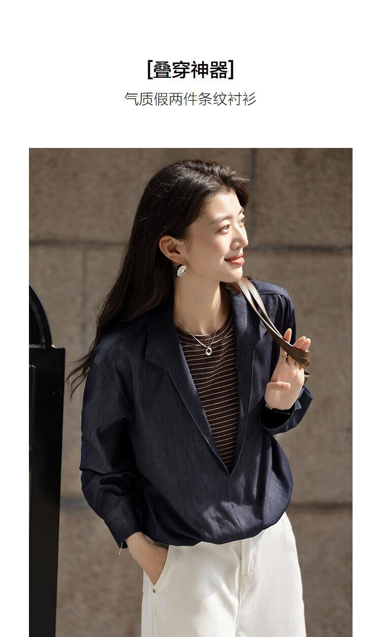 Demana layering artifact autumn temperament fake two-piece shirt imitation denim striped shirt lapel women's top