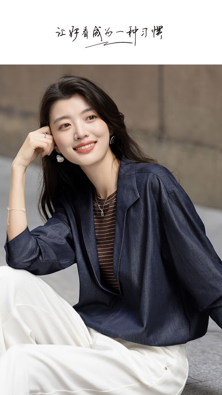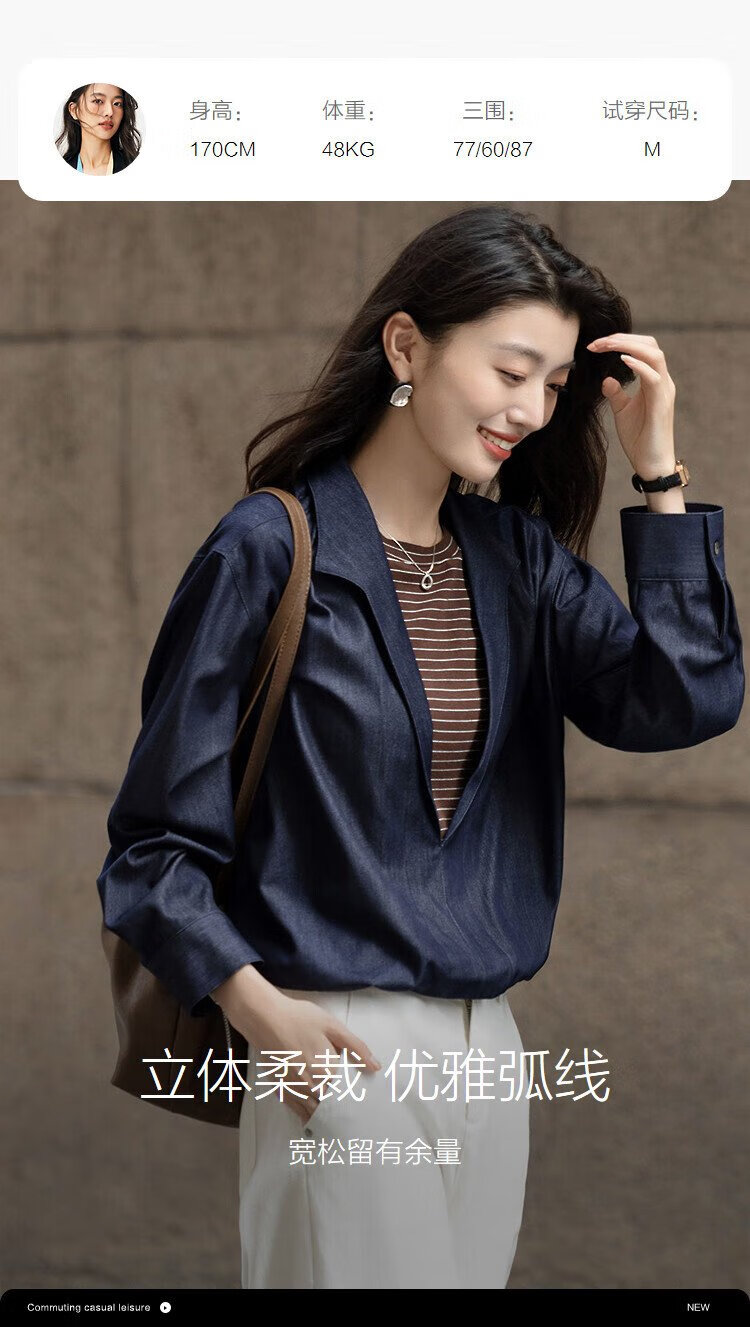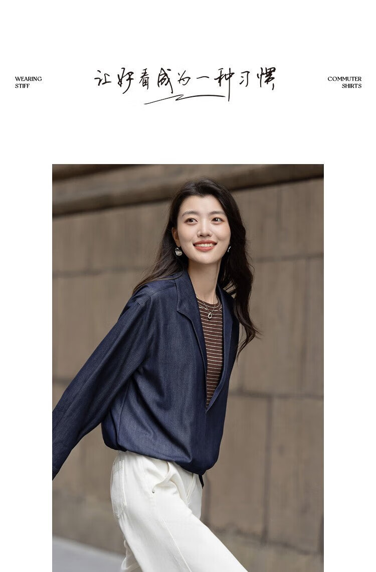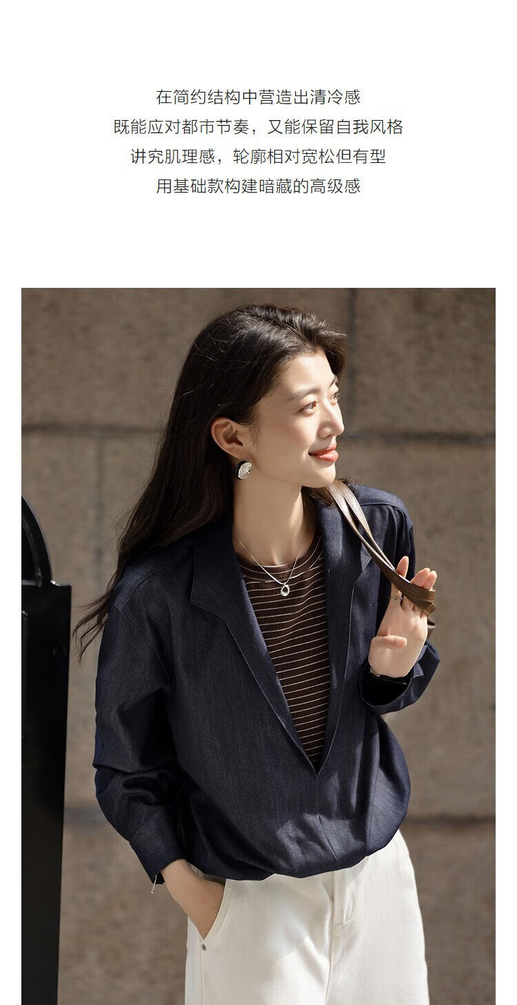 Demana layering artifact autumn temperament fake two-piece shirt imitation denim striped shirt lapel women's top