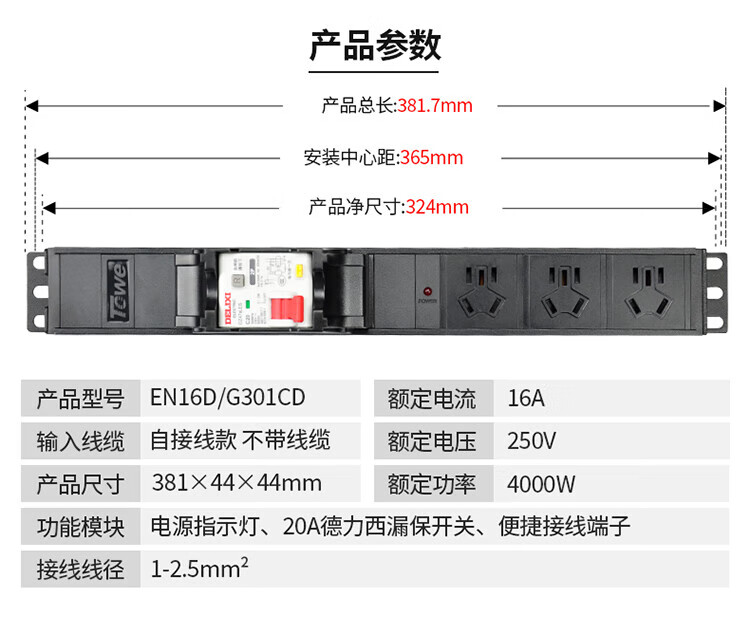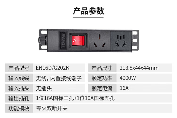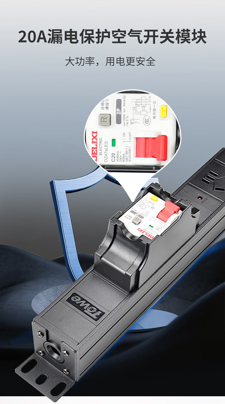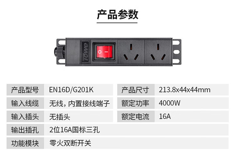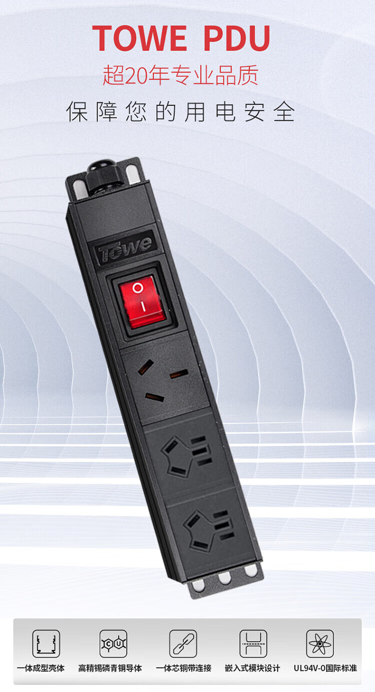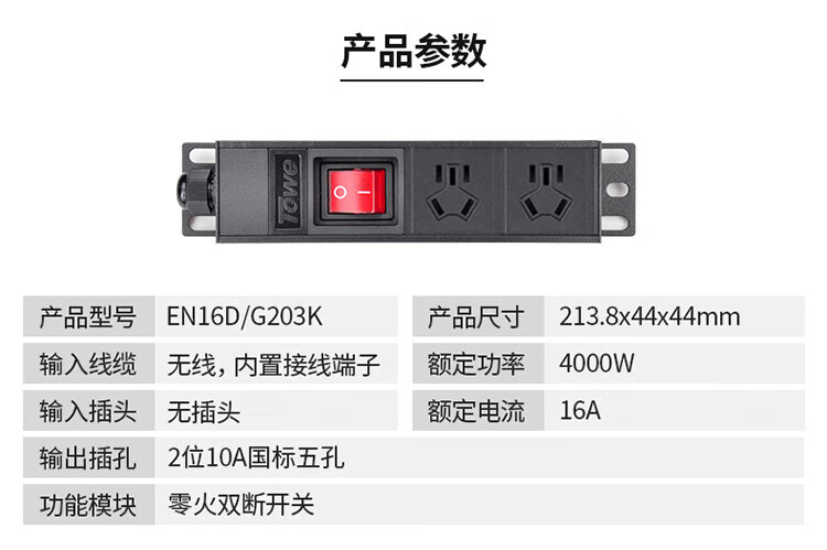 TOWE is also a high-power PDU cabinet socket multimedia weak current box short wireless PDU without wire strip with leakage protection air switch self-wiring strip 2 positions 16A EN16D/G201K