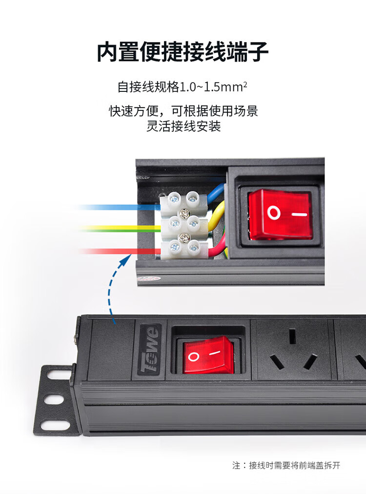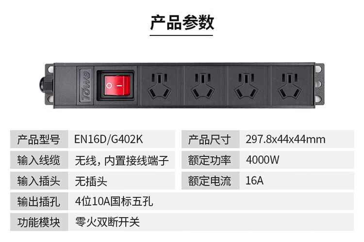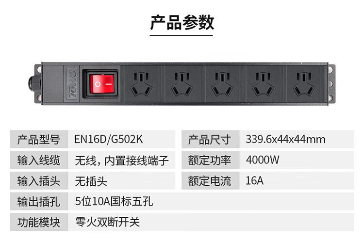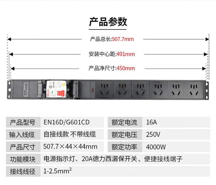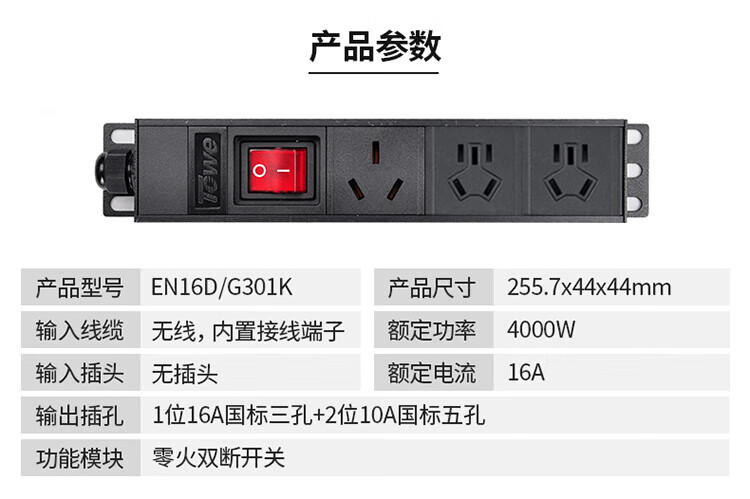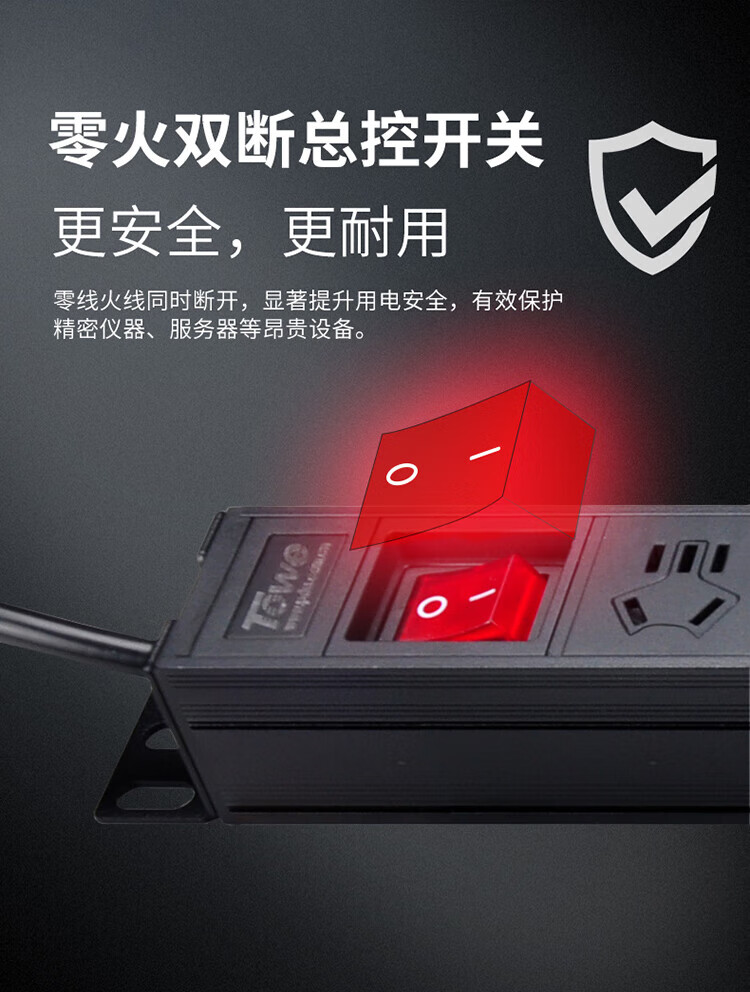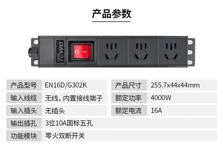 TOWE is also a high-power PDU cabinet socket multimedia weak current box short wireless PDU without wire strip with leakage protection air switch self-wiring strip 2 positions 16A EN16D/G201K
