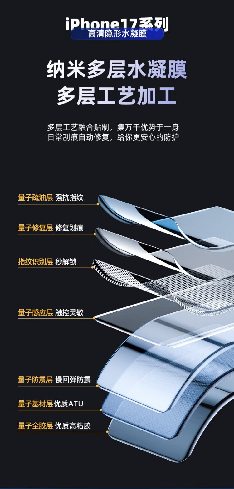 Smorss 2-piece repair, suitable for iPhone 17 mobile phone film, Apple 17 full glue invisible hydrogel film, non-tempered full screen edge-to-edge high-definition soft film, ultra-thin original feeling film