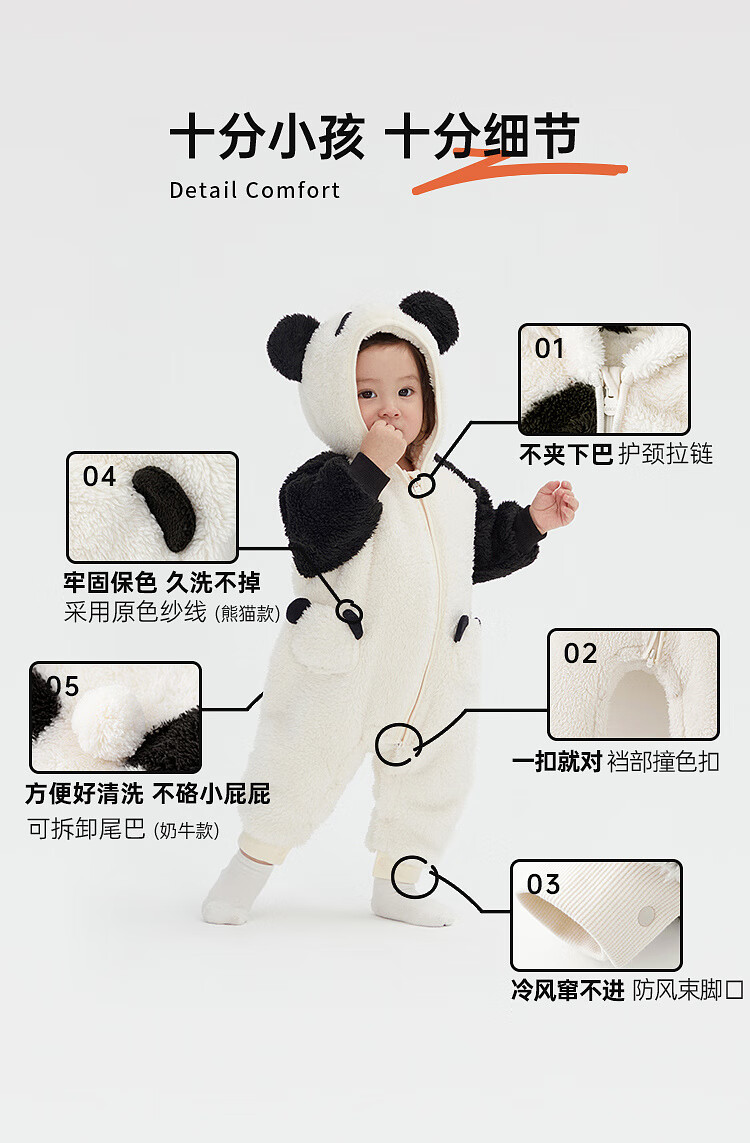 Papa baby winter style cuddly velvet romper baby panda (white) 80cm