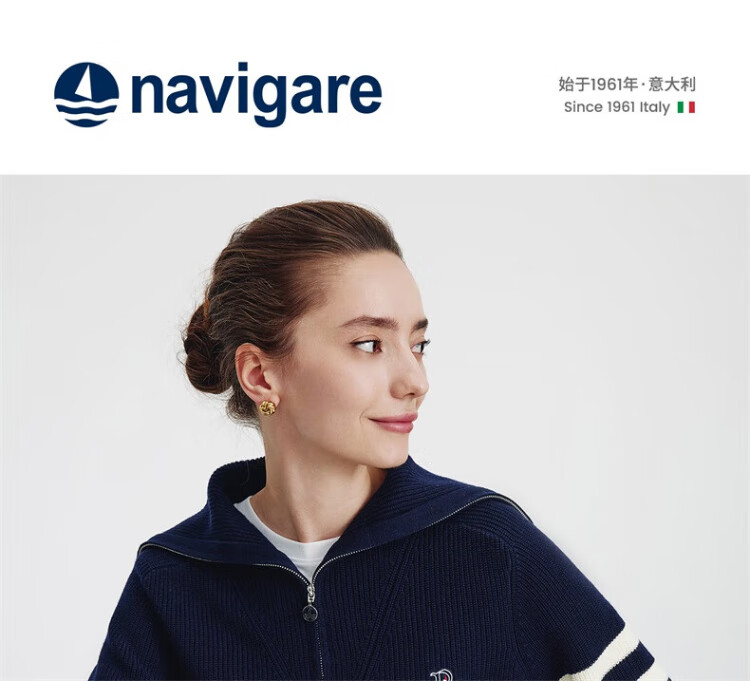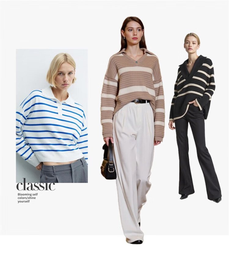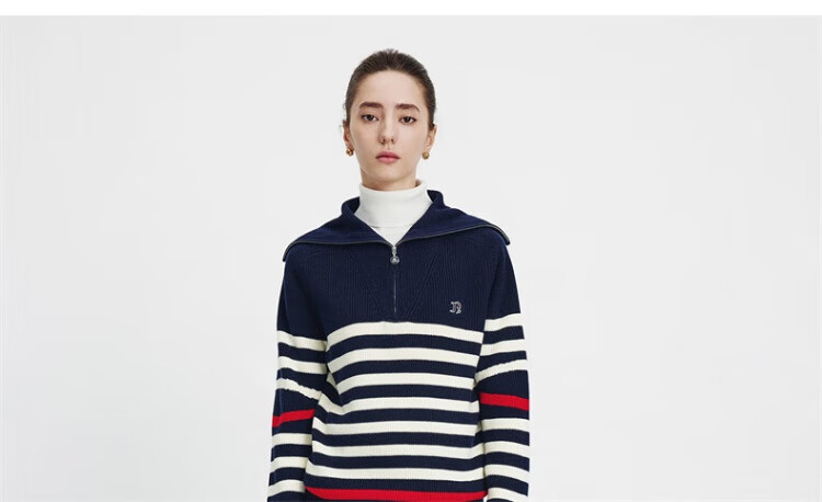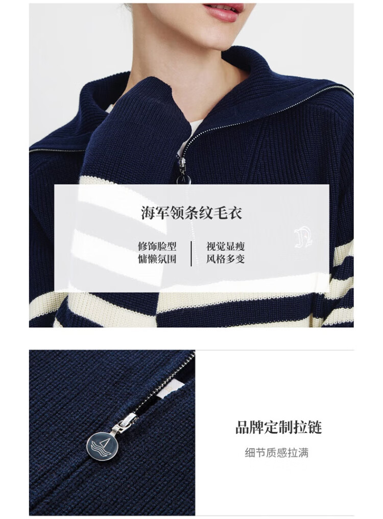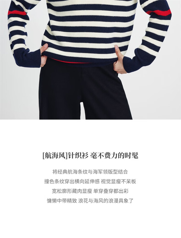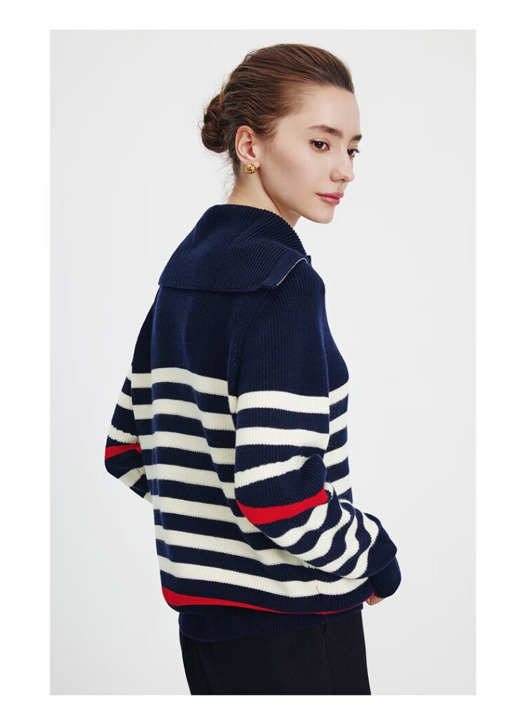 Navikel Italian dinghy women's 25-year new striped sweater loose large lapel sweater 2334045506