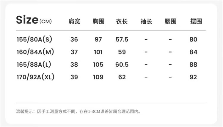 China (cm) 160-165/84-86 165-170 / 88-90 167-172 / 92-96 168-173 / 98-102 170-176 / 106-110