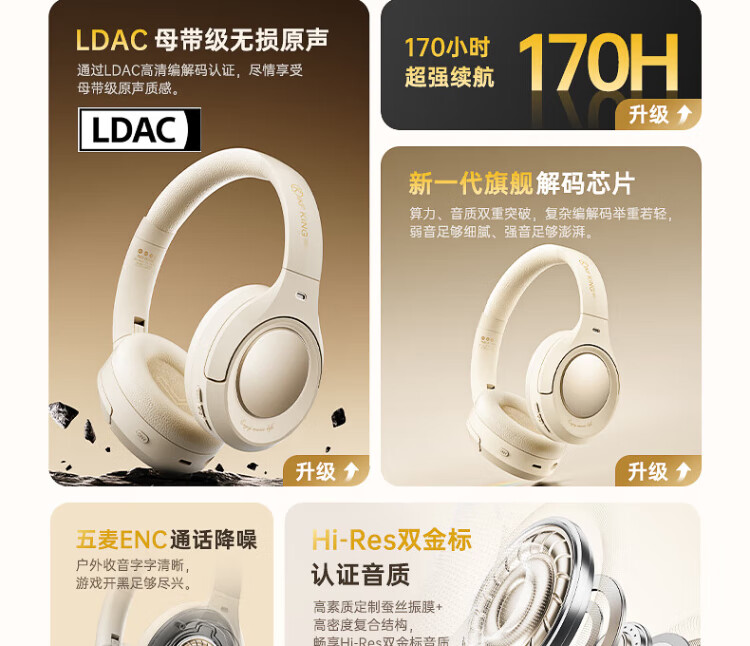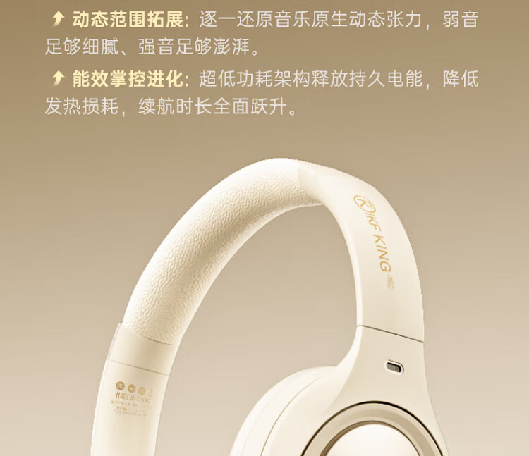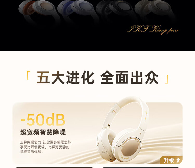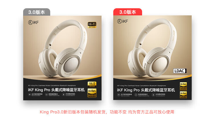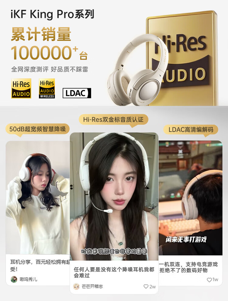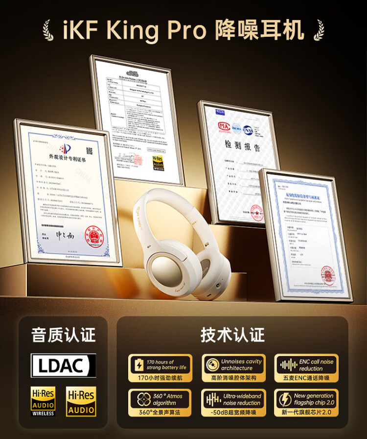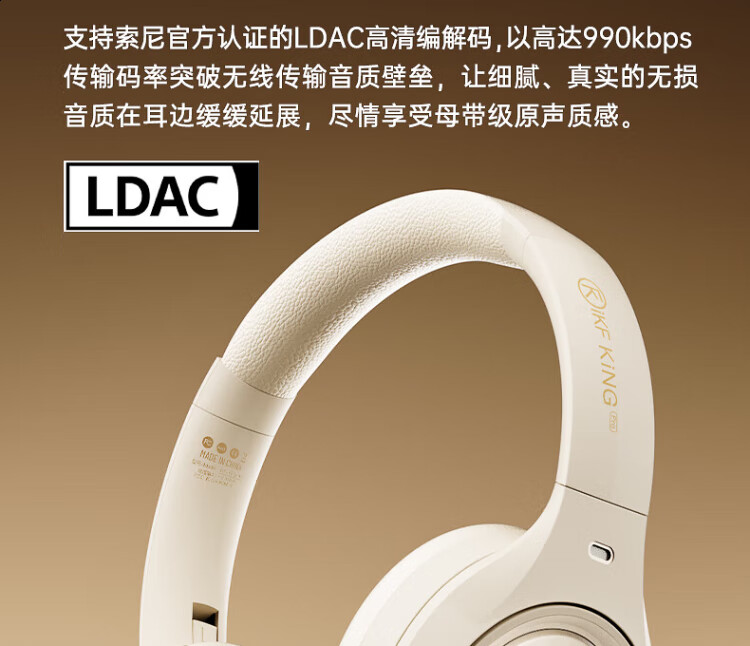 IKF King Pro3.0 Double Gold Label LDAC High Resolution Head-mounted Active Noise Reduction Bluetooth Headset New Wireless Wired Gaming Low Latency Super Long Battery Life Yunyan White