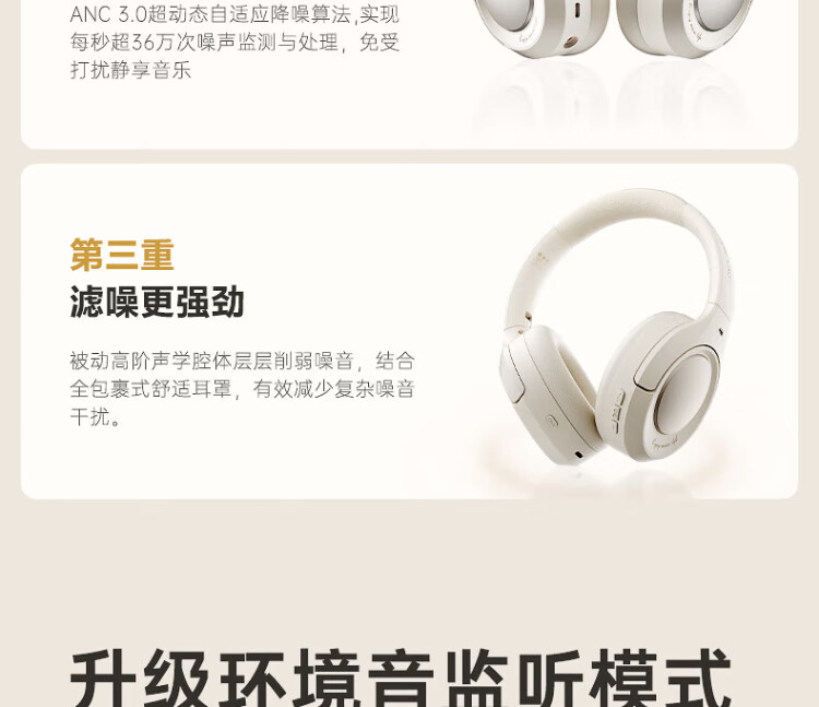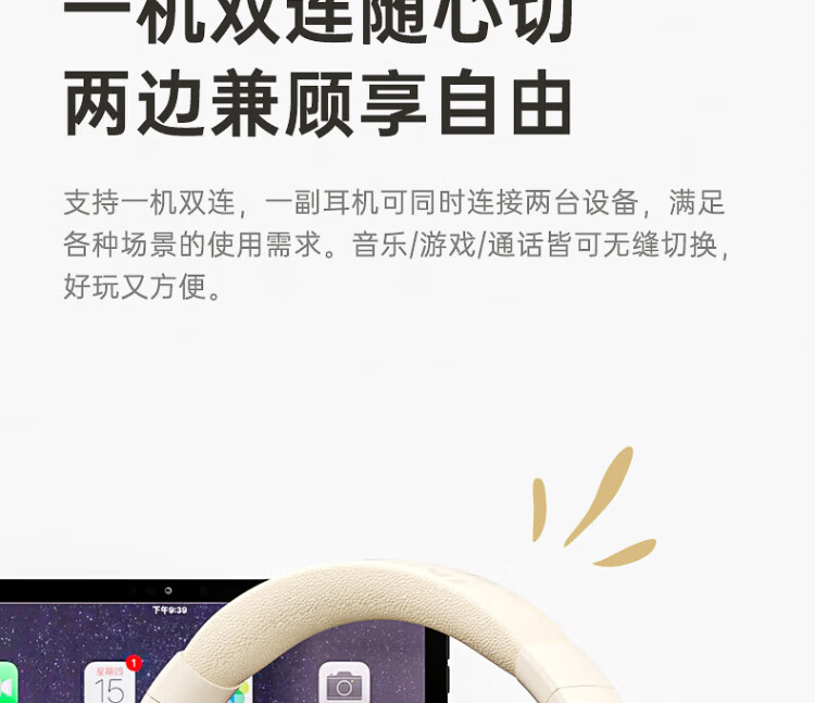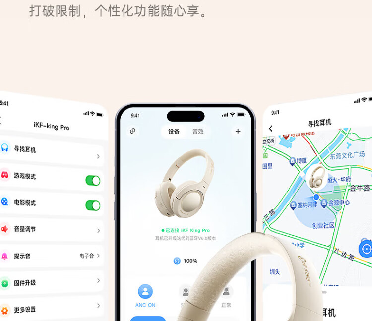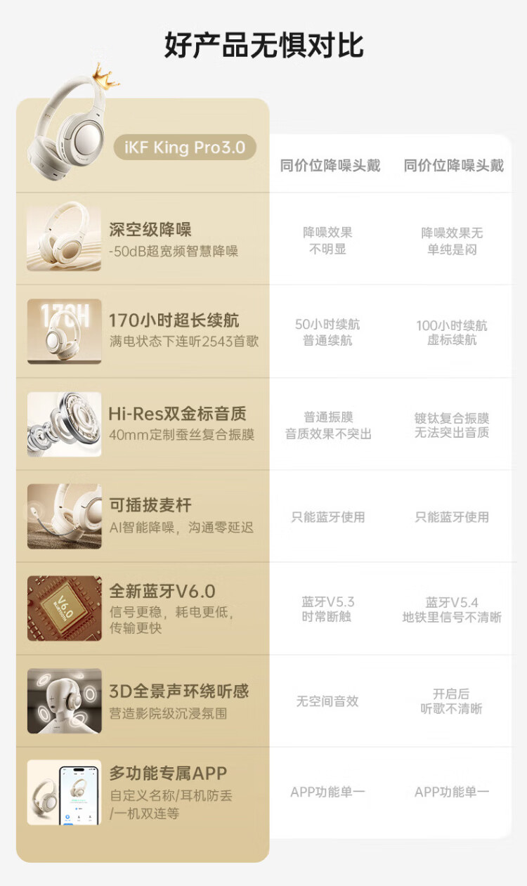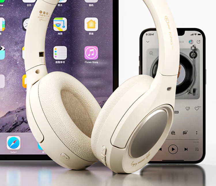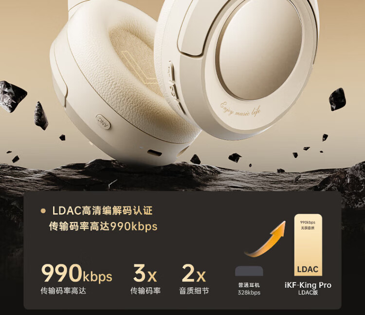 IKF King Pro3.0 Double Gold Label LDAC High Resolution Head-mounted Active Noise Reduction Bluetooth Headset New Wireless Wired Gaming Low Latency Super Long Battery Life Yunyan White